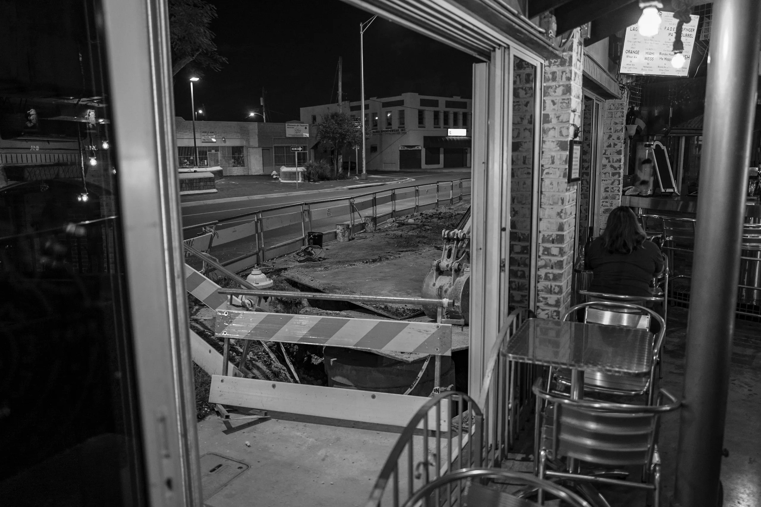 John Guilarte’s gastropub is surrounded by demolished sidewalks and rubble. Barricades from road construction block his entrance, and unsavory portable toilets line the street.
