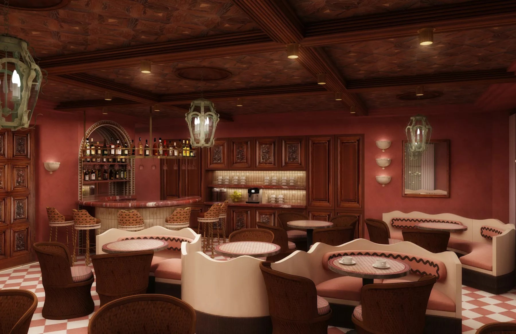A rendering of the signature El Salon restaurant inside the Esm