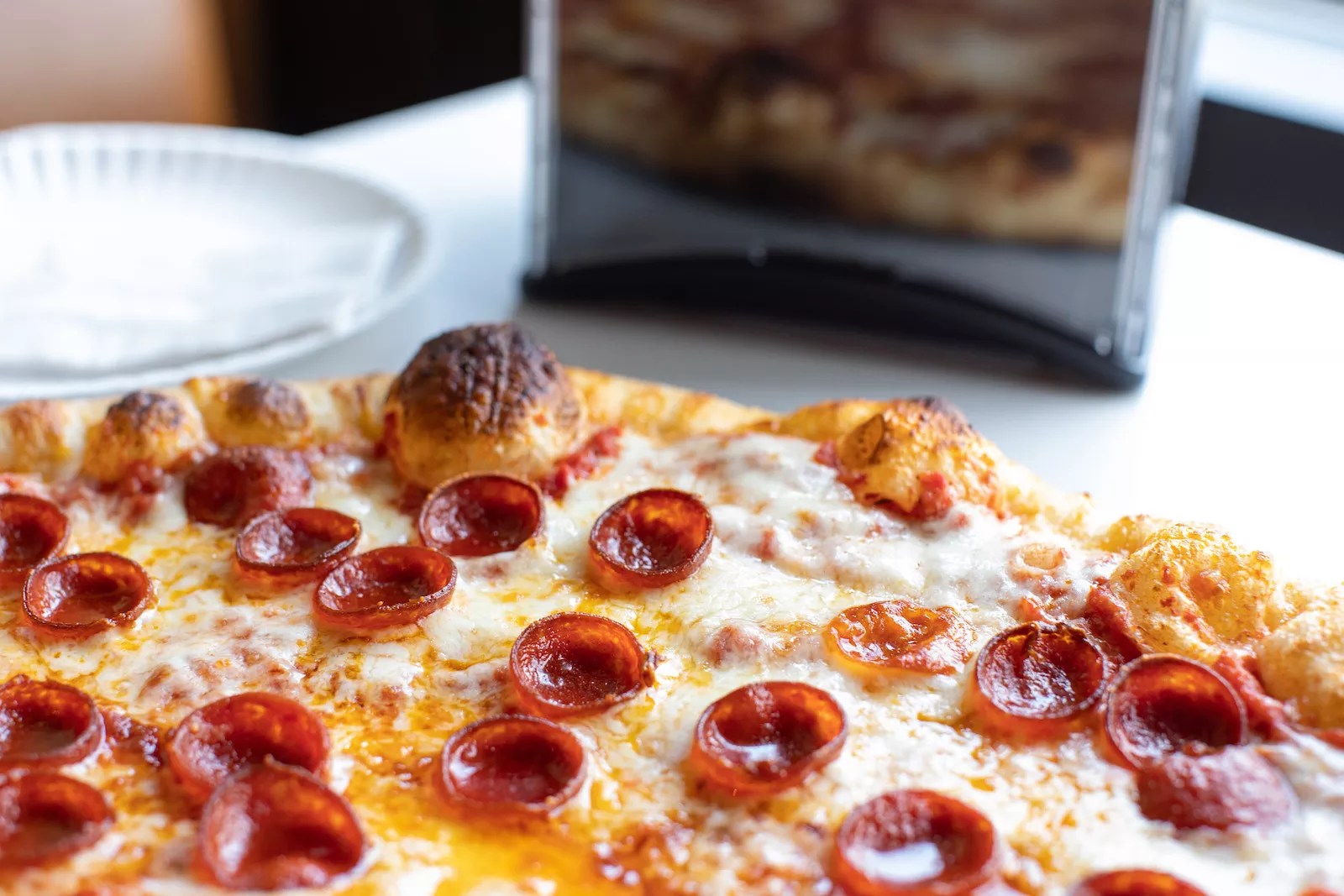 Stepping into Far Out Pizza can feel like waking up from a 1990s fever dream. Photos of pizza-centric movie stills hang on the walls. Nineties-era action figures rest on a shelf above the prep area. There’s even a Teenage Mutant Ninja Turtles arcade cabinet in the back. It’s the type of place that feels like it belongs in the suburbs – the perfect after-school hangout for bored kids. Or where families go for dinner when Mom doesn’t want to cook.