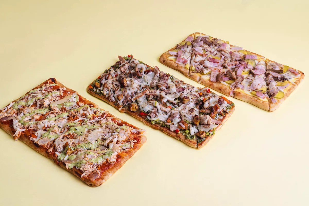 Its all-day menu is anchored by Cuban-inspired flatbreads, playfully known as “pixas.” Varieties include a Cuban sandwich-inspired variety made with roasted pork, ham, cheese, pickles, and a mustard sauce, and the “Lechon,” made with shredded pork in a mojo sauce with chimichurri, sweet plantains, and mozzarella cheese.