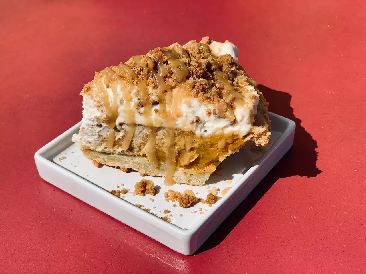 If you love cheesecake and pie, make sure Fireman Derek’s Bake Shop is on your radar this season. The bakery’s new lineup includes two delicious pumpkin treats. The pumpkin pie slices beautifully to reveal creamy, custardy pumpkin-spiced puree filling. The dessert is topped with fresh whipped cream, crunchy streusel, and drizzled with caramel ($38 whole/$7.50 slice). FD’s pumpkin cheesecake is cradled in the bake shop’s classic graham cracker crust, then crowned with housemade pralines and drizzled with caramel sauce ($59.99 whole/$6.99 slice). Orders can be placed through the restaurant’s website.
