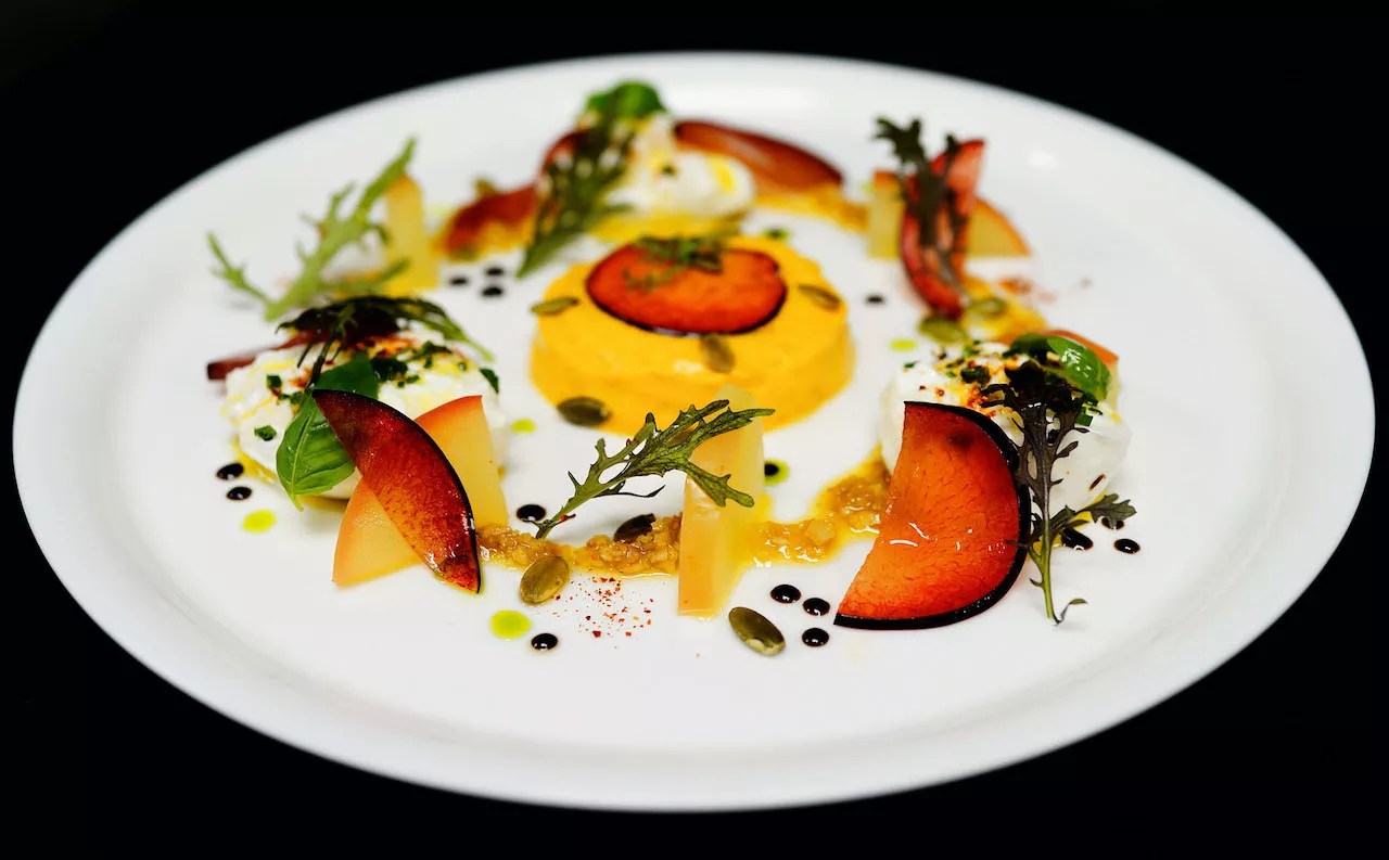 At Le Jardinier, chef Alain Verzeroli turns out an autumn-inspired starter made with red kabocha squash, AKA Japanese pumpkin. The squash is pureed and served with a vibrant mix of Honeycrisp apples and marinated black plums, layered with Marcona almond gremolata and burrata ($22).