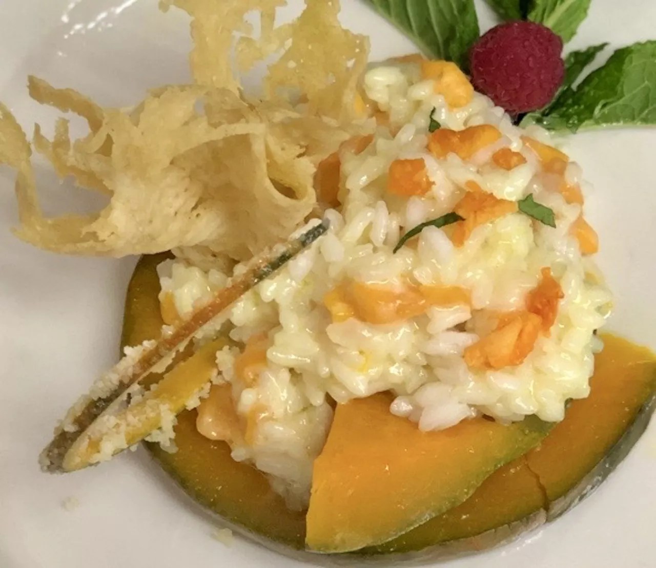 In Coral Gables, chef Elmer Moreno is giving an Italian classic a boost of fall flavor. His main course of pumpkin risotto is a creamy dish that toes the line between sweet and savory and is served with parmesan crisp for a touch of crunch ($32).
