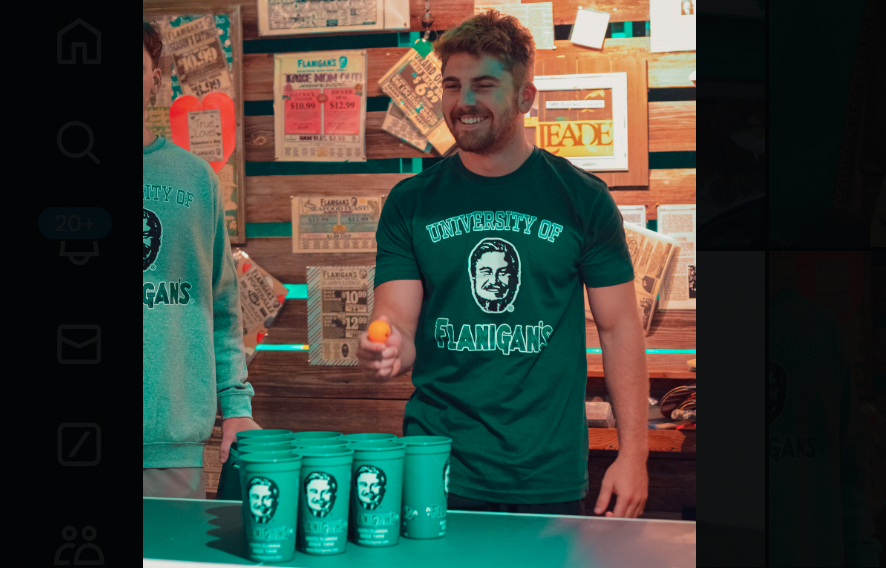 The “University of Flanigan’s” forest green T-shirt is still available for purchase as of 4 p.m. (pictured below). However, the Miami Football shirts were nearly sold out as of 4 p.m.