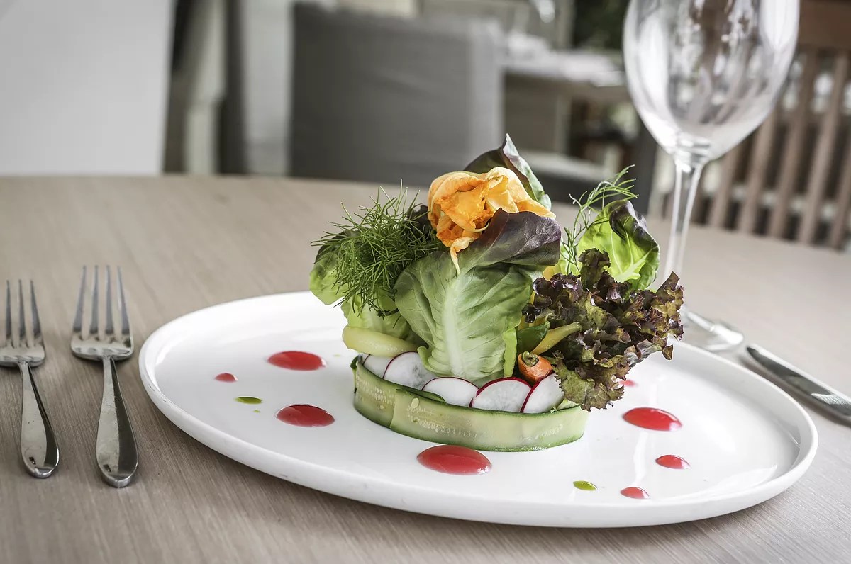Raw and cooked organic seasonal vegetables with Tuscan olive oil