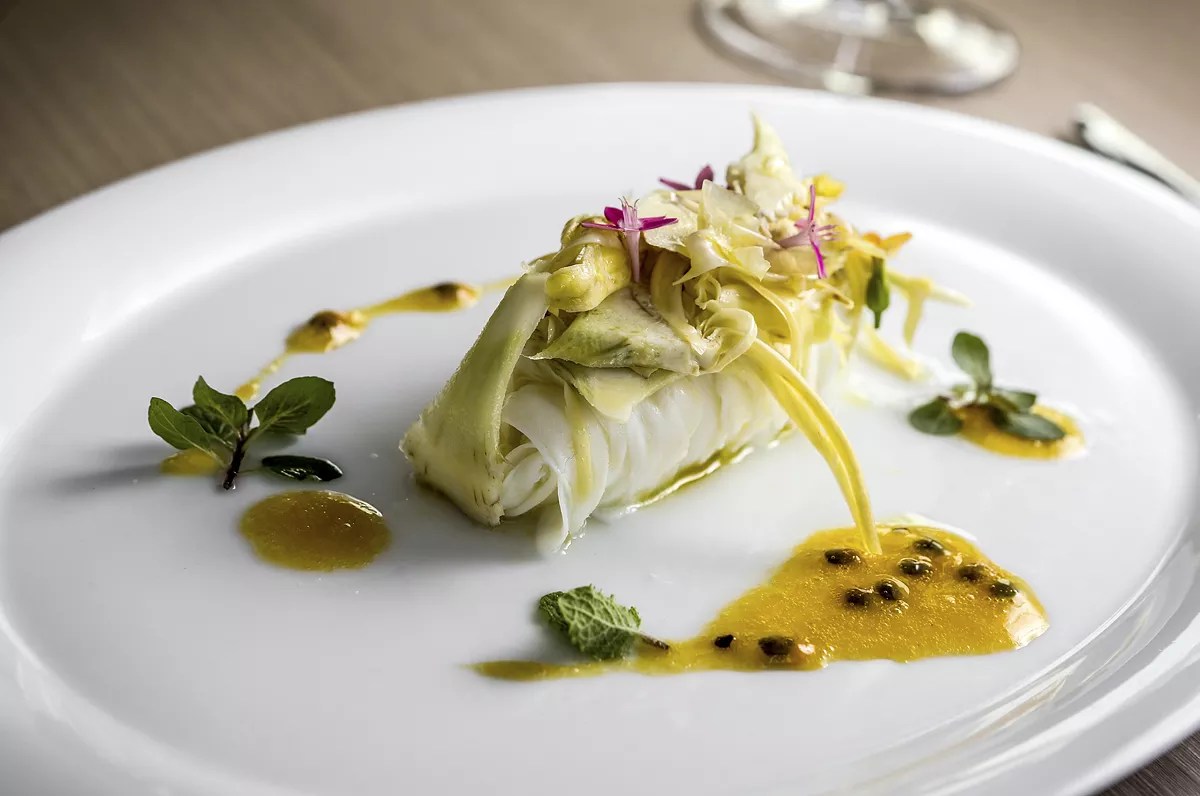 Antonio Mellino grew up just outside Naples and acquired his knowledge of seafood from his father, who was in the business. Despite having plenty of local fish to choose from in Miami, the toque prefers to source it from the Mediterranean because he finds the product saltier. For the calamari starter, the kitchen cooks the squid sous vide and flash-freezes it. It’s then thinly sliced to resemble strands of tagliatelle pasta and seasoned with lemon, olive oil, herbs, and wisps of artichoke.
