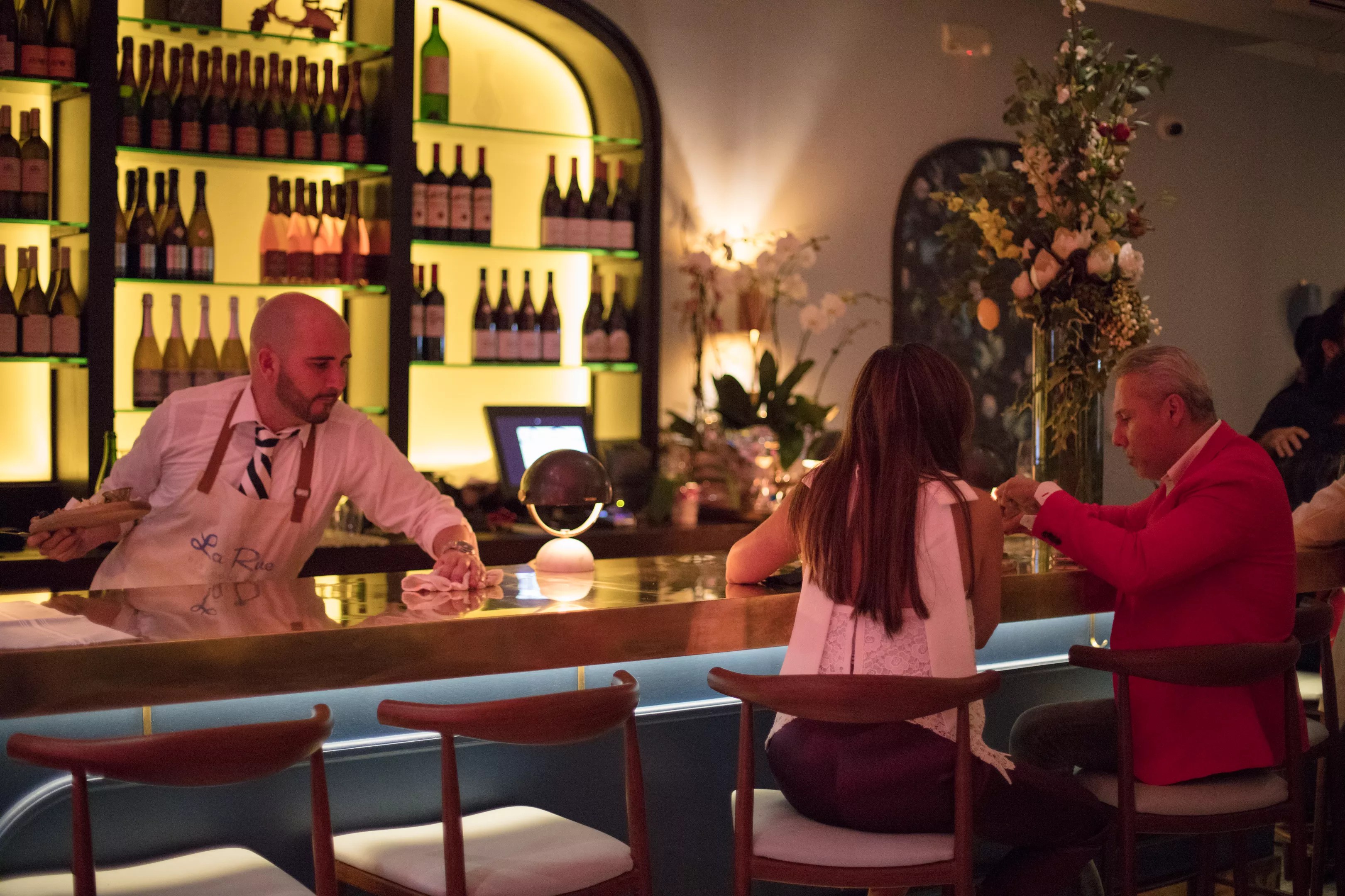 Offering 50 seats inside and 20 outside, the space has been transformed to look like a traditional brasserie, with a new façade displaying beautiful colors and stripes. Farinelli says La Rue is chic, classic, and casual and serves a more contemporary style of French cuisine while still featuring the classics.