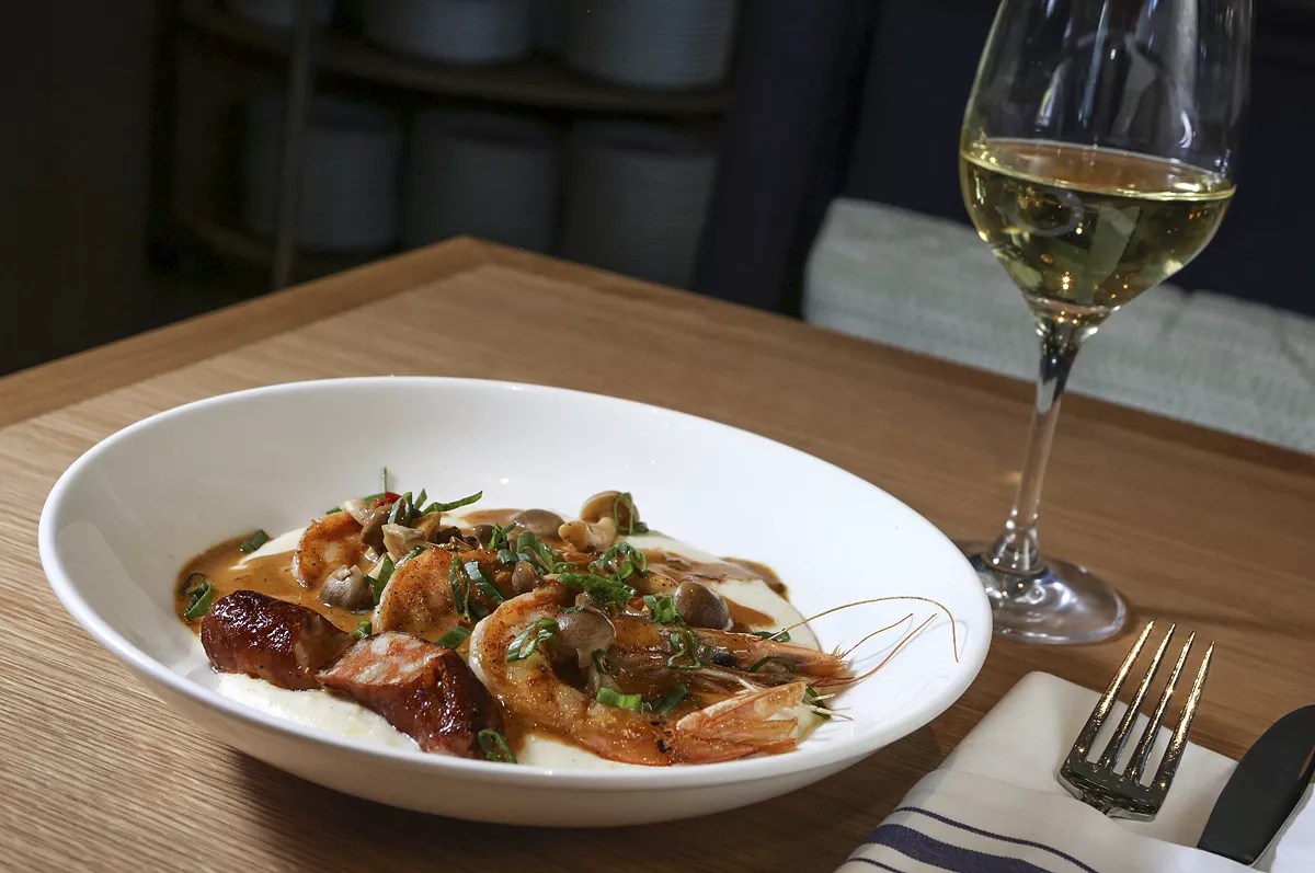 Where Point Royal really hits its stride is the more entrée-like dishes. The shrimp-and-grits main course isn’t reinvented, just executed beautifully. Head-on shrimp are cooked to tender perfection, mixed with a homemade shrimp and swordfish sausage, and set atop a creamy bed of Anson Mills grits. The dish is a reminder that you don’t need to do new things if you do old things right.