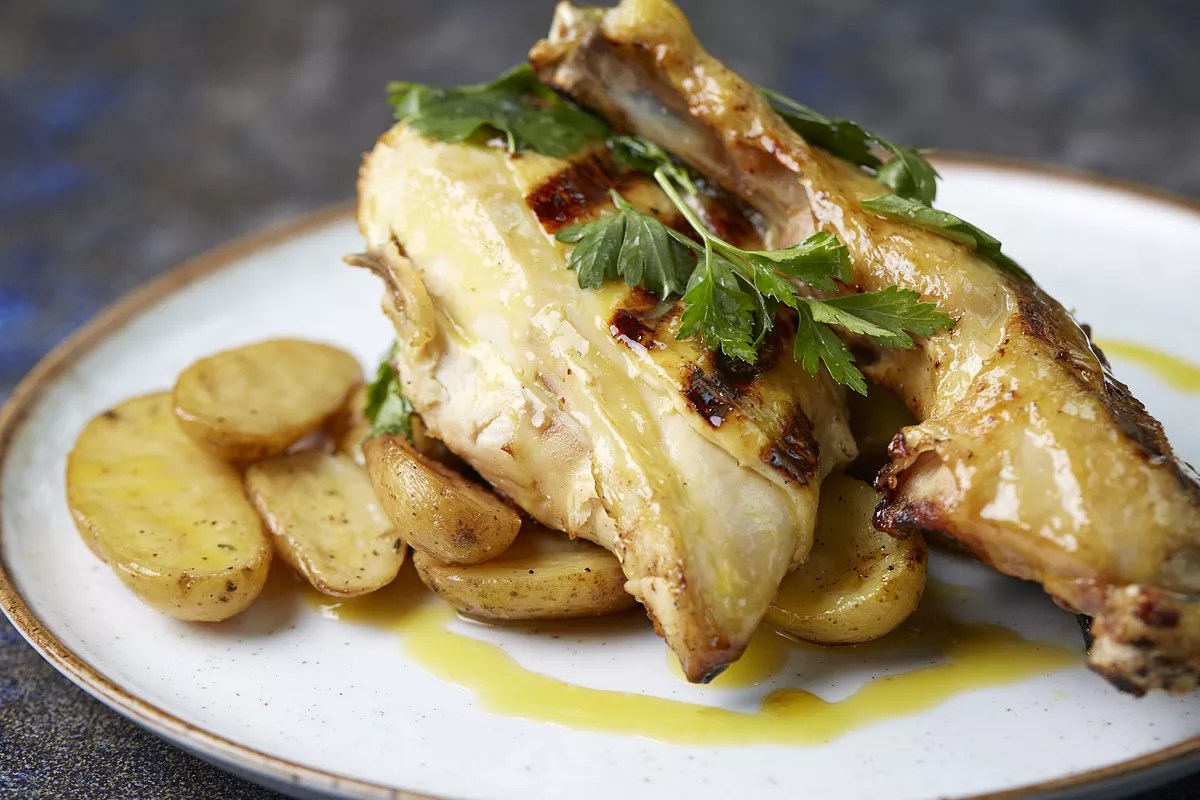 The all-day menu includes a sweet grilled peach salad with stracciatella and toasted pine nuts ($11) and a daily rotating risotto ($21). The gnocchetti arrives with a spring-green purée of poblano peppers and mint, garnished with a creamy parmigiana foam ($18). Crushed pistachios give the dish added texture and an earthy, sweet finish.