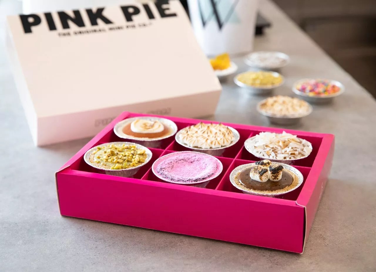 Pink Pie. This Hollywood shop is offering its three-inch mini pies for pickup and delivery. Place orders by Sunday, November 18, for pickup or delivery Wednesday, November 21. Choose from nine unique flavors, including the popular pumpkin cookie butter and Oreo Nutella, which will satisfy a sweet tooth, and the salted caramel and pecan bourbon bacon, which will appeal to a savory taste. Packages vary from 12 to 54 mini pies, and prices range from $27 to $108. Pickup Wednesday, November 21, from 8:30 a.m. to 7:30 p.m. at 1940 N. 30 Rd., Unit 112, Hollywood; 954-744-0214; pinkpie.com.