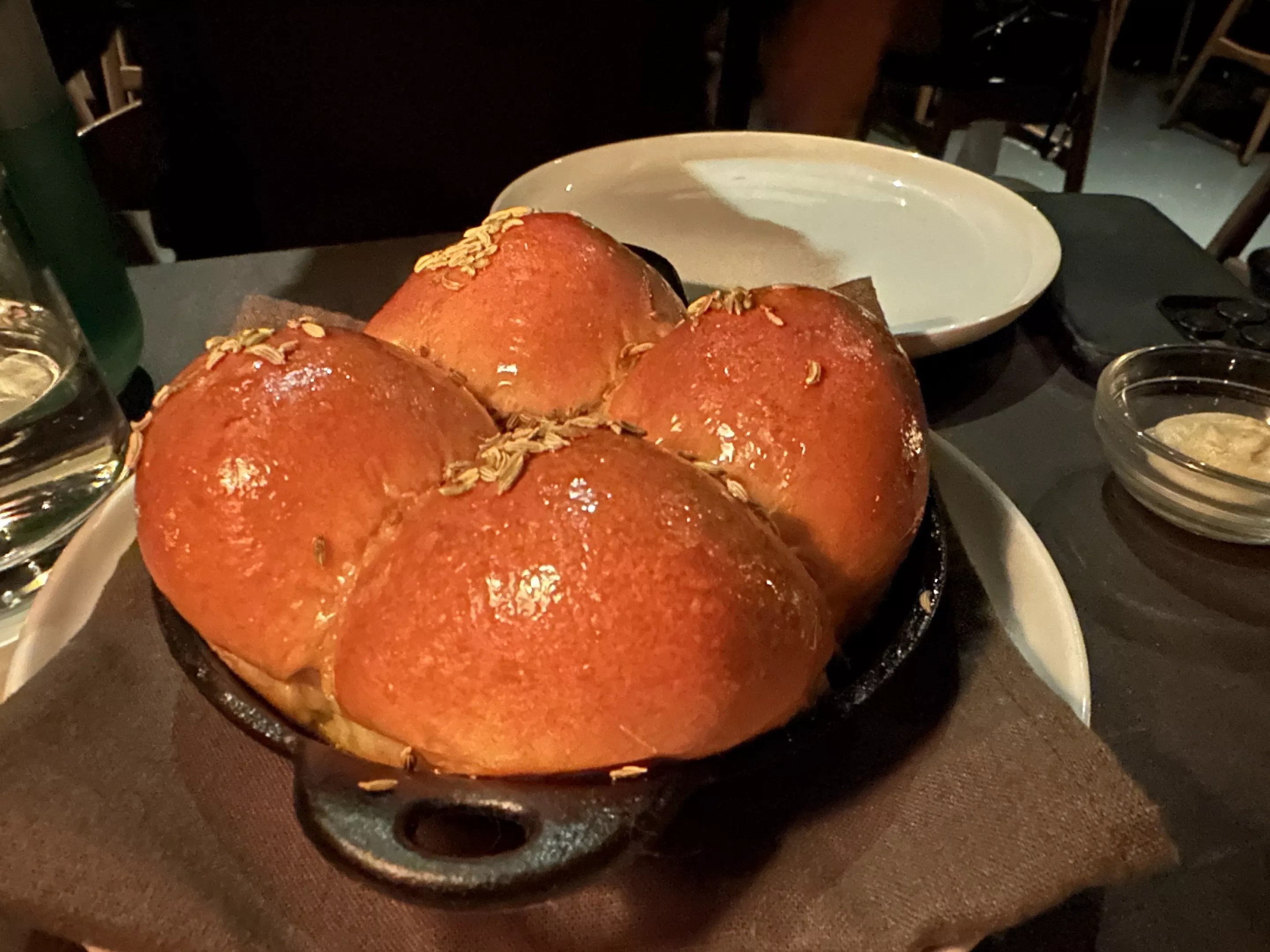 We tried a unique dish with octopus and pork belly, which sounds like an insane combination, but it was so delicious. We also had the lump crab cavatelli, which was a texture bomb in your mouth, and the bread served in a cast iron skillet with a house-made butter was divine.
