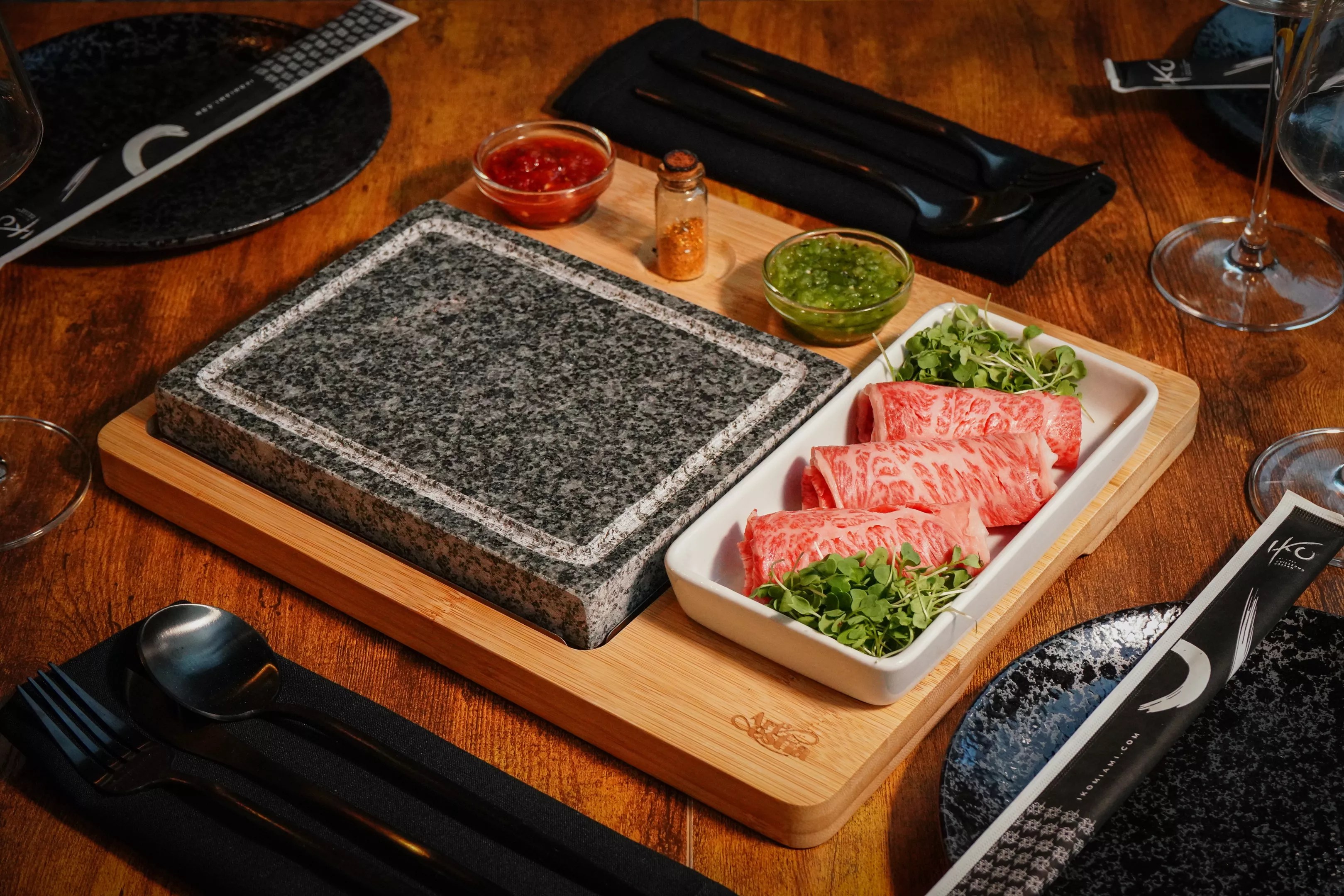 From the aromas of the sizzling beef being cooked on the hot stone to the wild flavor combinations, neurogastronomy also connects how food and flavors affect memory, explains Gassan. “In each dish, I aim to capture the essence of Japan’s rich culinary heritage while bringing in a touch of exoticism that’s true to our concept,” he says. “At Iko Miami, it’s not just about great food – it’s about creating an experience that resonates with our guests from the first moment to the last bite.”