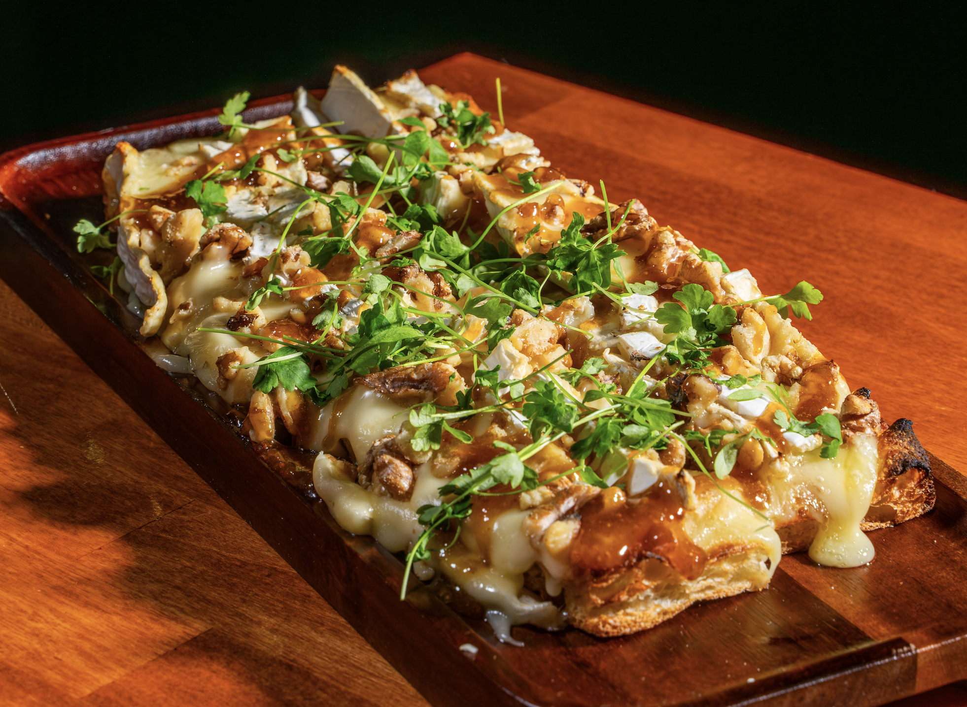 The “Jholano Loves Fig” flatbread is made with Italian fig jam, walnuts, prosciutto di Parma, and micro basil.