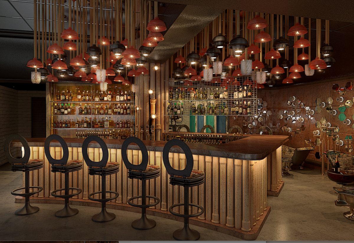 A rendering of a cocktail bar inside Julia & Henry’s
