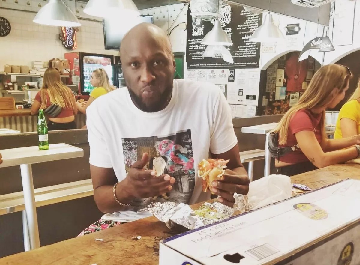 According to a source, Odom arrived with two other men and was “really cool and down-to-earth.” The affable athlete took pictures with fans and played about $5 in videogames while at the burger shop.