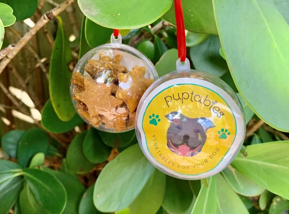 Culinary prowess runs in the Hutson family. Cindy Hutson’s daughter, Ashley, creates delicious treats for your best friend with her Puptables line. Fresh Christmas cupcakes cost $25 for a six-pack or $5 each. A Christmas ornament is filled with a dozen mini-bones and stars in pumpkin, apple, and cinnamon flavors. Order by December 23 for Christmas delivery. Order at puptables.com.