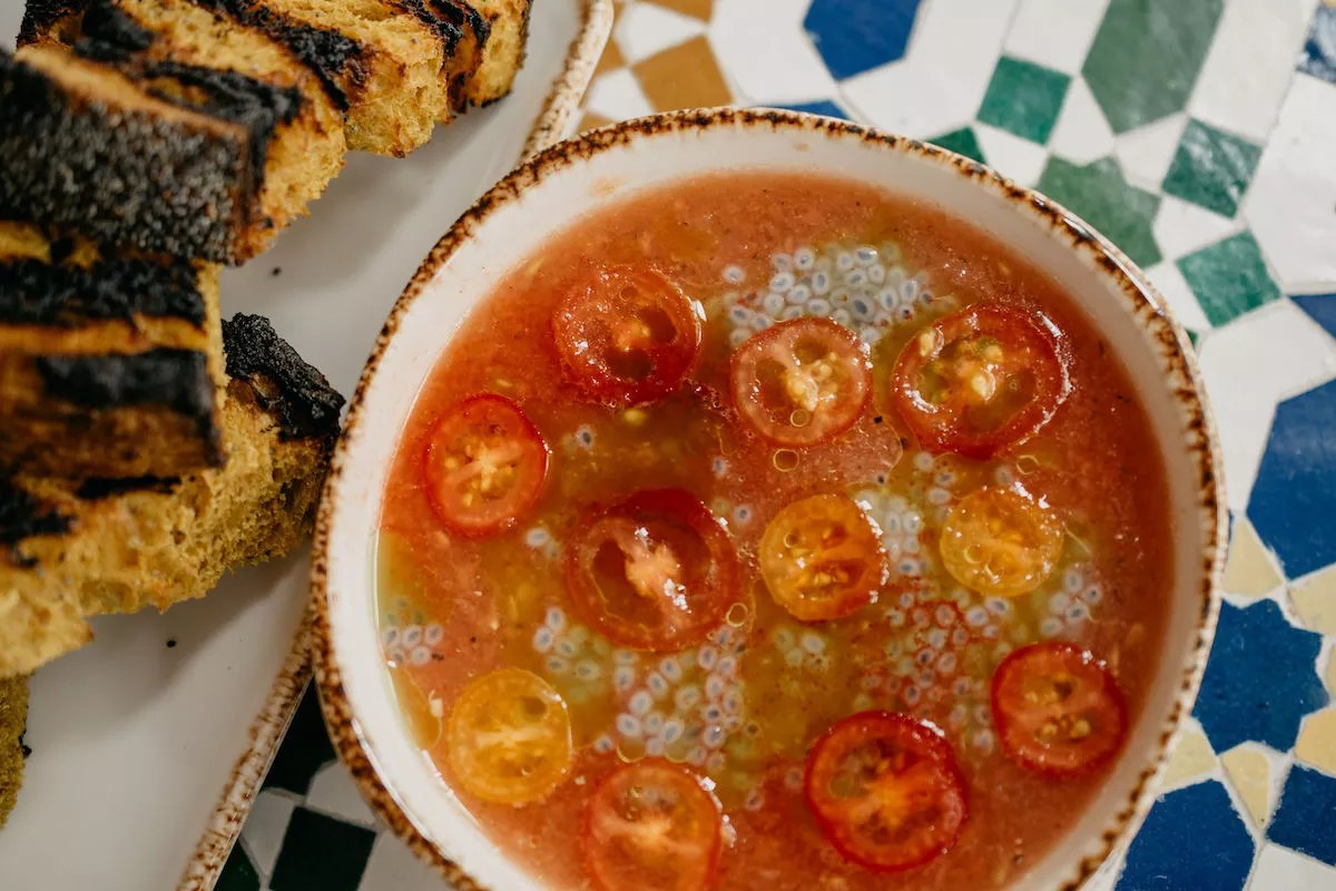 Li cites Tropezón’s spin on pan con tomate as a prime example: It has all the traditional flavors of the classic Spanish dish. Presented as a deconstructed presentation of stewed tomatoes, it’s served with a turmeric-spiced sourdough bread that channels the region’s Moorish influences.