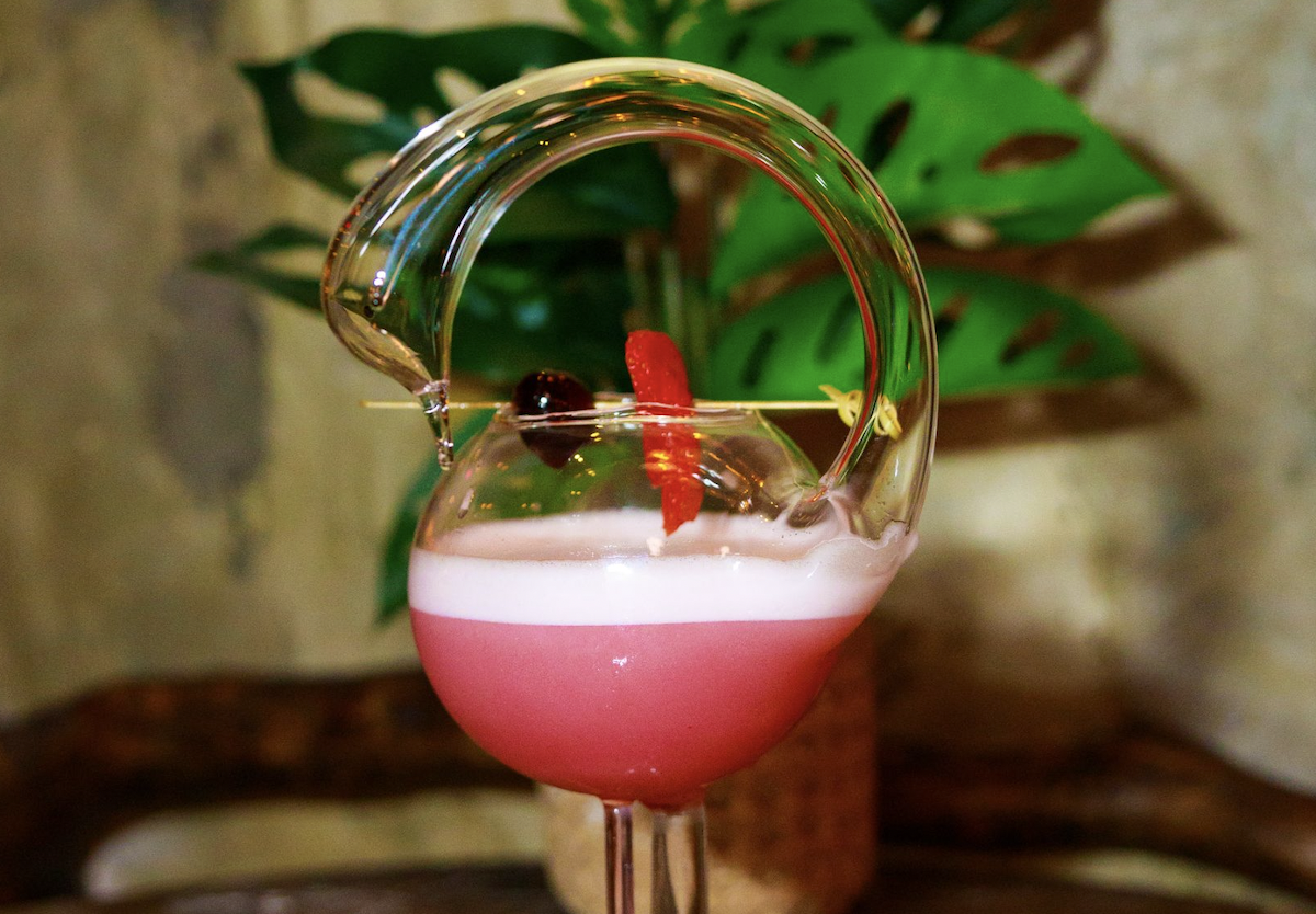 A pink cocktail in a fun glass at Casa Matilda in Miami Beach