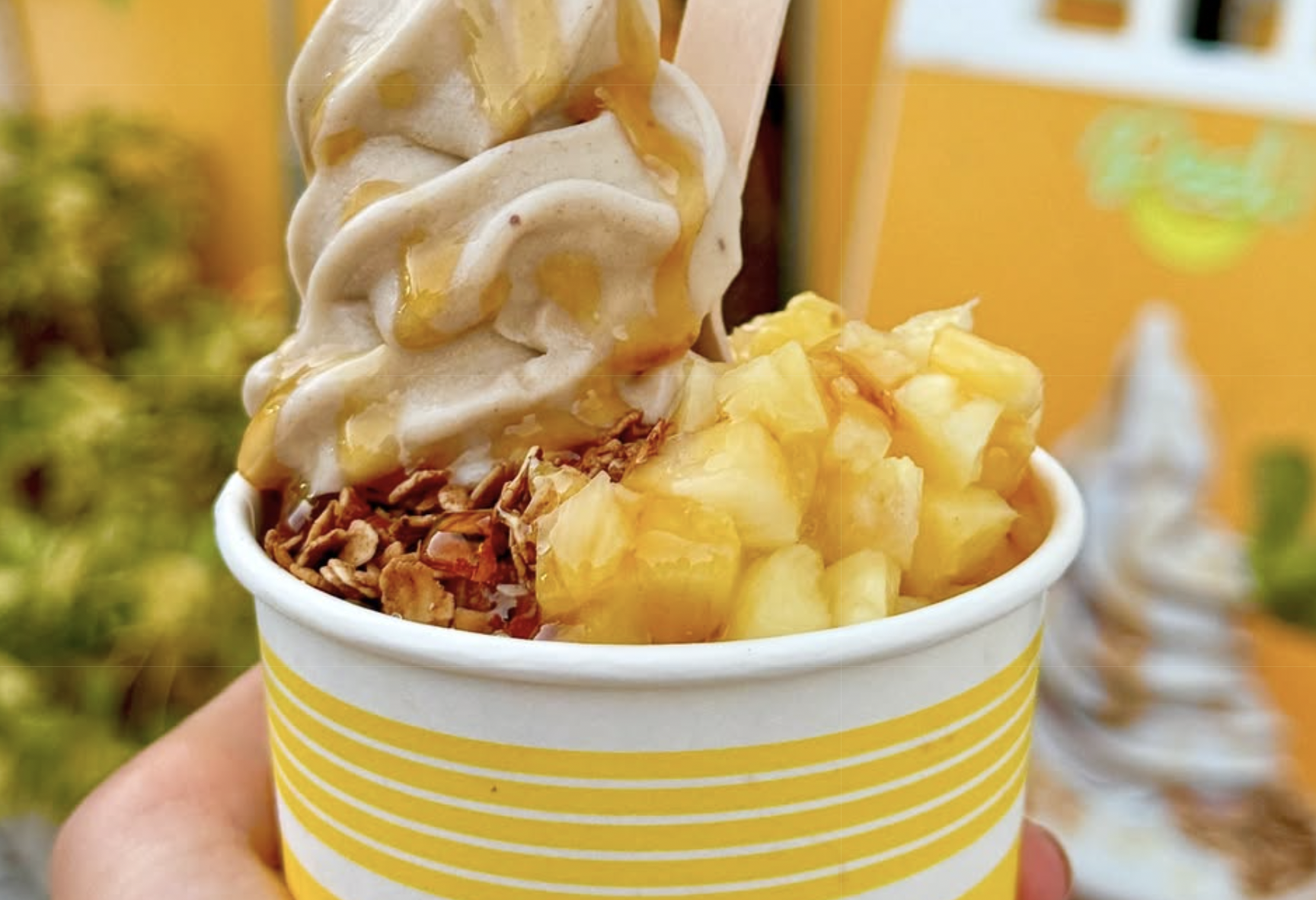 A banana-based soft serve from Peel topped with mango and granola