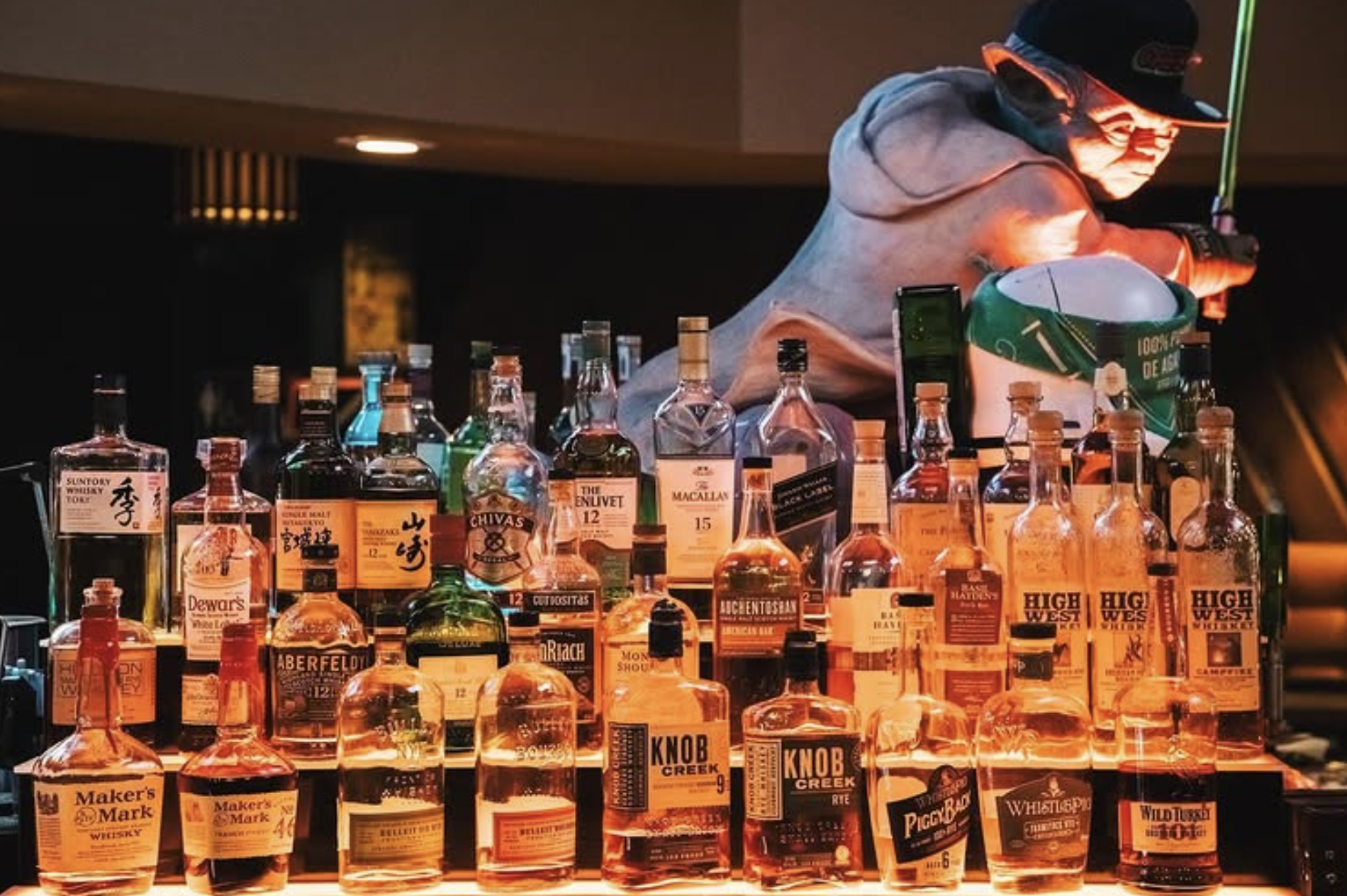 While maintaining its authentic 70s ambiance, the Bend has added pop culture elements over the years. Guests can play on a classic Pac-Man/Galaga arcade machine, try their luck at a Star Wars pinball machine, or challenge friends to Nintendo 64 games like Mario Kart and GoldenEye 007 on an old-school TV. A life-size Yoda statue serves as the bar’s focal point.