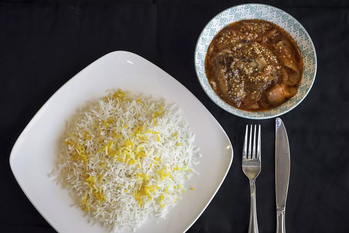 As our server shuttles a sabzi salad with fresh mint and pomegranates to our table, my mom stage-whispers that she’s convinced the waitress is Persian, a family habit when meeting anyone vaguely Mediterranean whom my relatives like. We’ve ordered heaping plates of koobideh, ghormeh sabzi, and a vegan khoresh made with split peas and roasted eggplant. My mother pauses and taps the scorched tahdig with her fork. She nods in approval as she takes the first bite before we dive in. She notes that she’ll incorporate the pomegranate seeds used as a garnish throughout the meal in her own home cooking – a compliment of the highest degree.