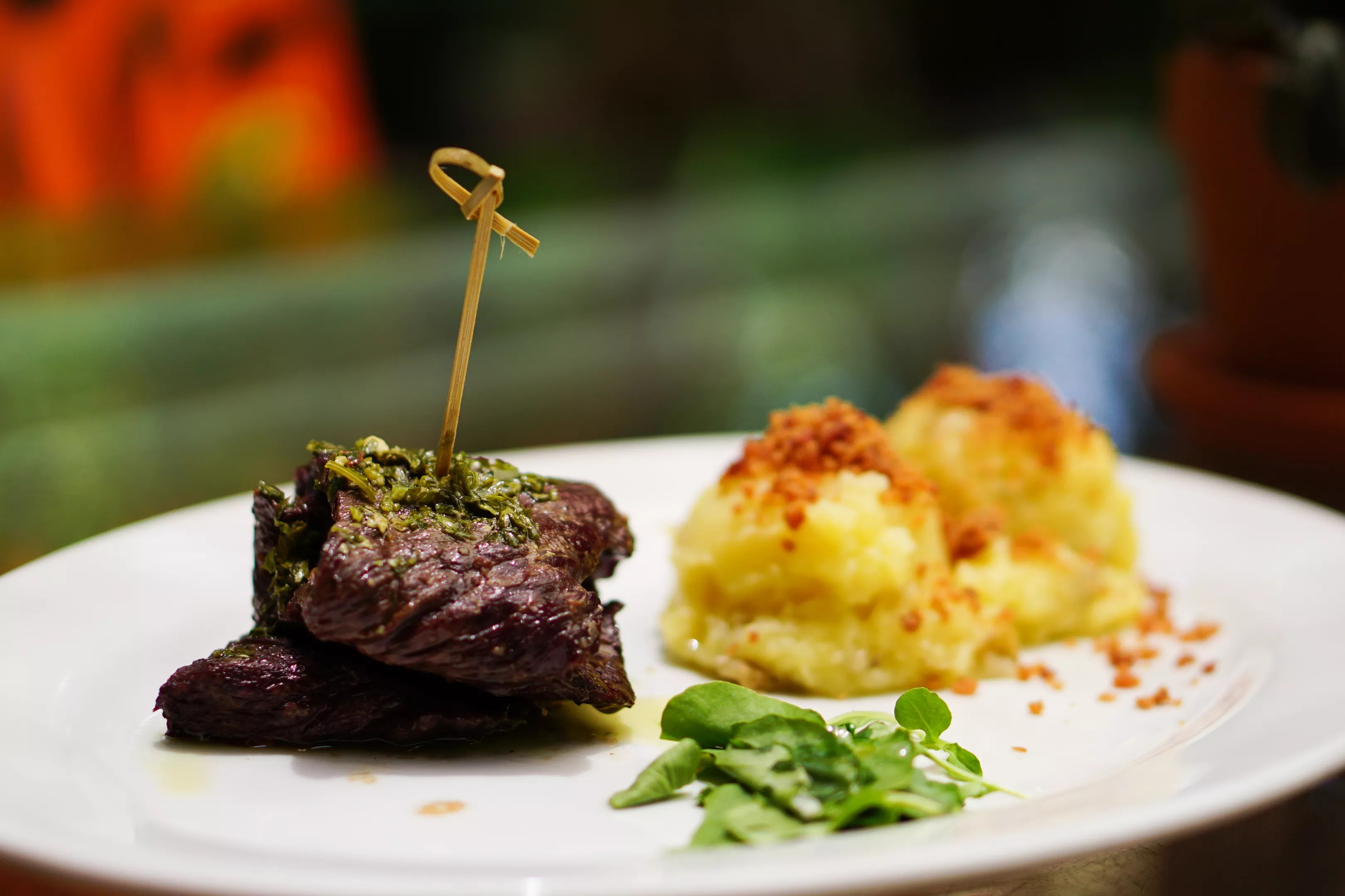 Angus prime rib-eye with mashed potatoes