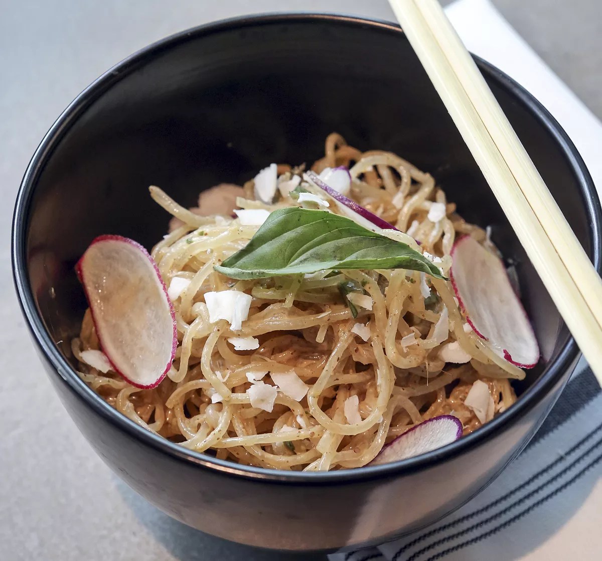 The menu includes everything from chilled kelp noodles to a jackfruit taco al pastor alongside avocado miso toast, pear flatbread, and farro risotto. The place serves meticulously plated food, offers beer and wine, and has a sleek, minimalist décor. It’s one of a few eateries to fill the void between casual juice bars and vegan cafés. Soul Tavern and Crate Plant-Based Kitchen, Bar & Lounge are two others.