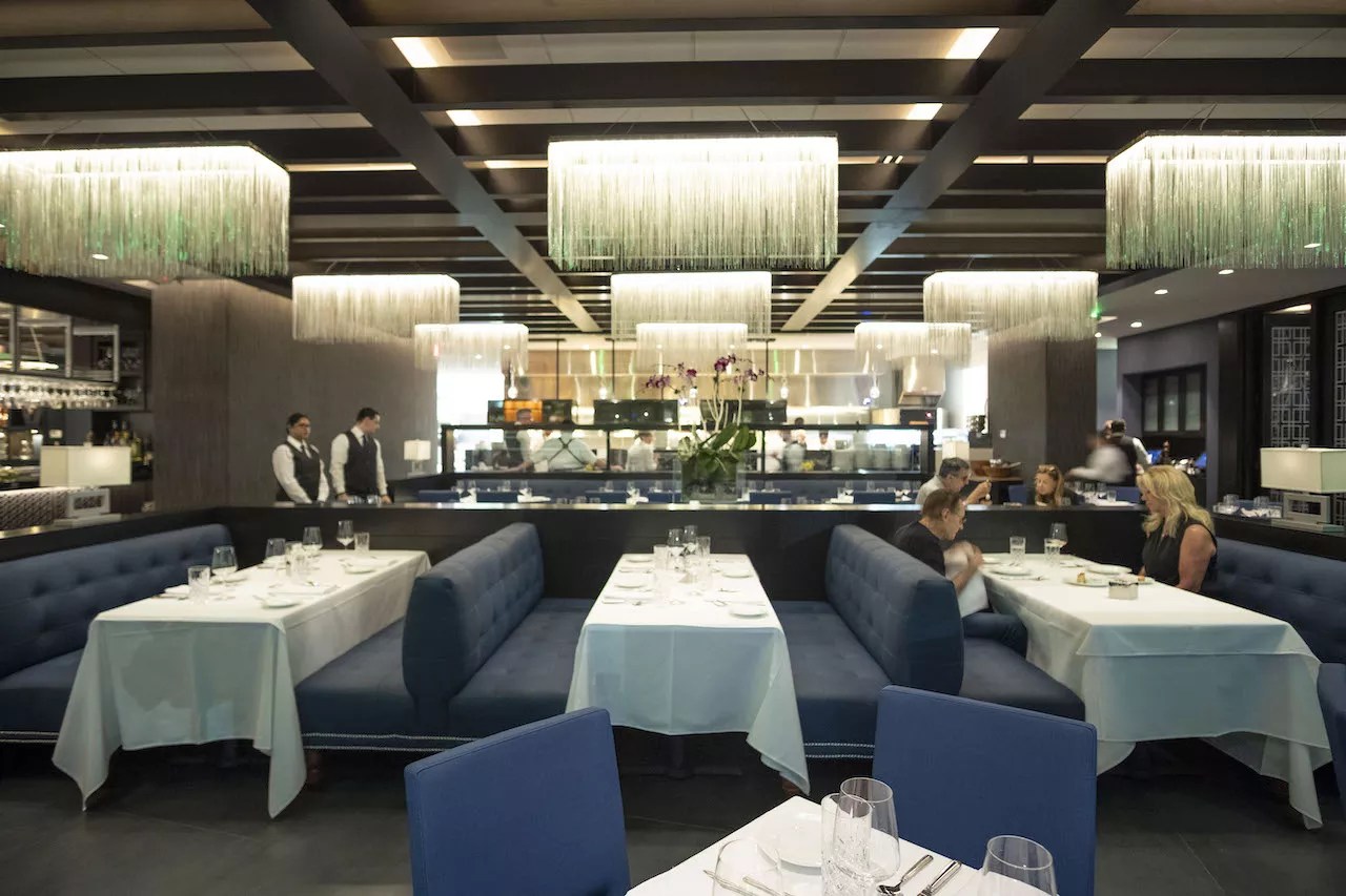 In the whitewashed dining room or by the pool, enjoy a buffet-style menu of sushi and sashimi alongside a bevy of Mediterranean-inspired dishes, such as slow-roasted strip loin, line-caught Atlantic salmon, orzo, and mezze. Look for paddlefish caviar next to the raw bar of king crab legs, shrimp, and fresh oysters on the half shell. At the tables holding sweet treats, dip marshmallows in a fountain of chocolate or try banana crème brûlée. Priced at $85, the brunch includes live music and bottomless rosé, sparkling wine, and bloody marys. Brunch is served Sunday from noon to 3 p.m.