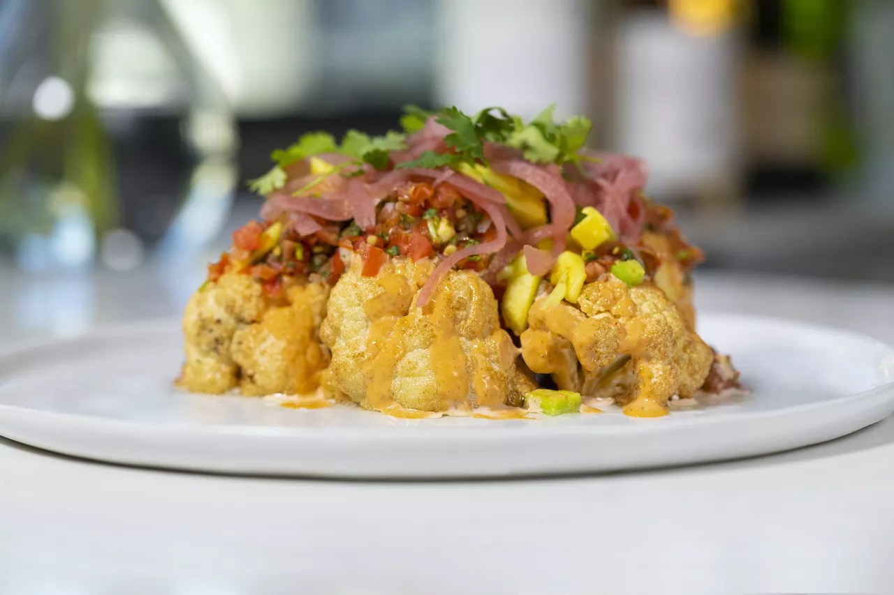 At its South Beach and Aventura locations, Delicious Raw offers an all-day menu of nourishing plant-based dishes for brunch. The vegan and vegetarian lineup includes the righteous waffle ($10.50) – made with energy-sustaining ancient grains, house-made vanilla almond milk, cinnamon and other spices – served with blueberry-lemon compote, fresh mint strawberry preserves, or vegan pure maple butter. For a savory dish, try LeSmash: avocado infused with truffle oil and lemon, served on artisan vegan, gluten-free bread, and topped with herb-roasted cherry tomatoes, organic microgreens, and pumpkinseed dukkah ($9.50); or the vegan Nobl burger, with pickles, smoked aioli, truffle-infused garlic Dijon, baby spinach, herb-roasted cherry tomatoes, roasted portobello, and Bermuda onion, served on house-made vegan brioche bun ($15.50). Pair your items with a golden turmeric latte with coconut milk ($6); 16-ounce juices such as Immunity, made with kale, spinach, apple, parsley, celery, cucumber, and lemon ($8.50); or a Rise & Shine smoothie, containing banana, oats, flaxseed, yogurt, dates, orange, and almond milk ($9.50). Brunch is served daily from 7 a.m. to 9 p.m.