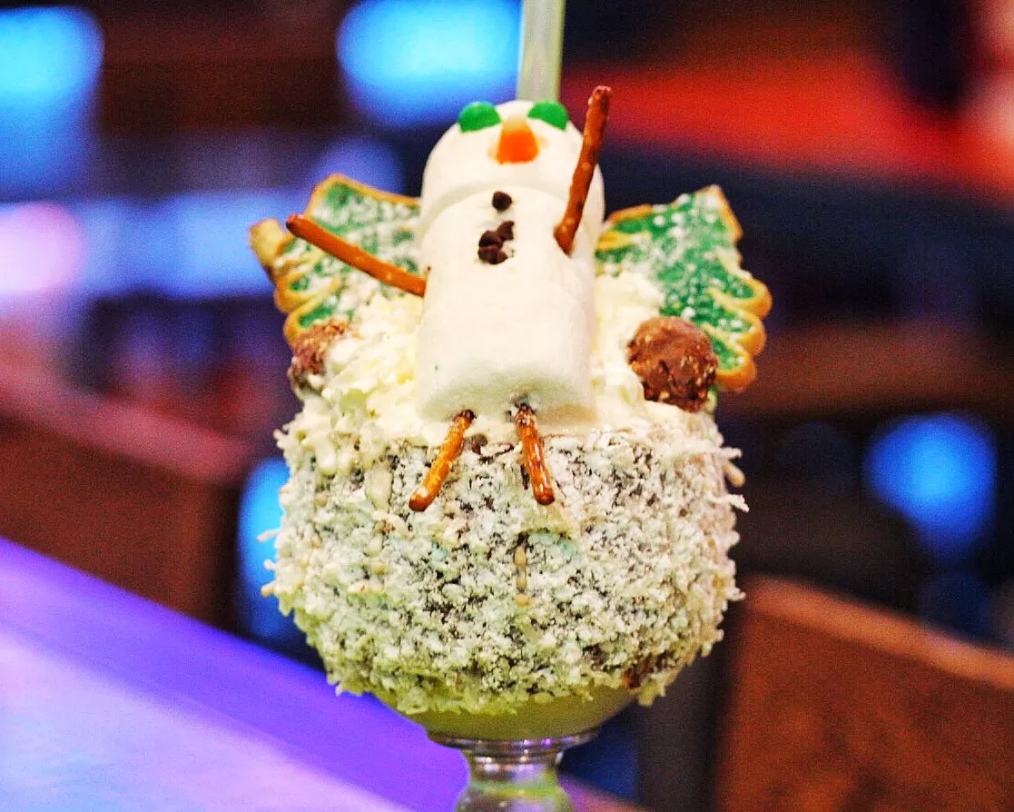 4. BRGR Stop. The Fort Lauderdale burger joint is pouring hefty portions of nostalgia with its boozy holiday shakes. Opt for Jack Frost Nipping at Your Nose, a colossal bourbon-based milkshake overflowing with candied concoctions and topped with an adorable marshmallow snowman ($9.95). 1930 E. Sunrise Blvd., Fort Lauderdale; 954-533-8621; brgrstop.com.