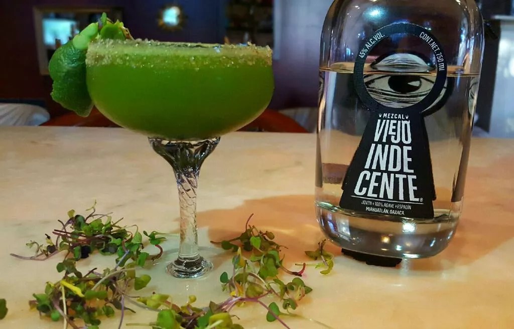 Ever since Tyler Ridgeway, head bartender of Repour, visited the Oaxacan distillery by Viejo Indecente, he knew he had to make something special with its mezcal. Ridgeway shared that he wanted to create something as rare as everyone he met during his travels in Mexico. He pours a mix of Viejo Indecente, celery, snow pea, lime, chipotle agave, and grapefruit bitters into a margarita glass with a spicy salt rim for his MezCalifornication.