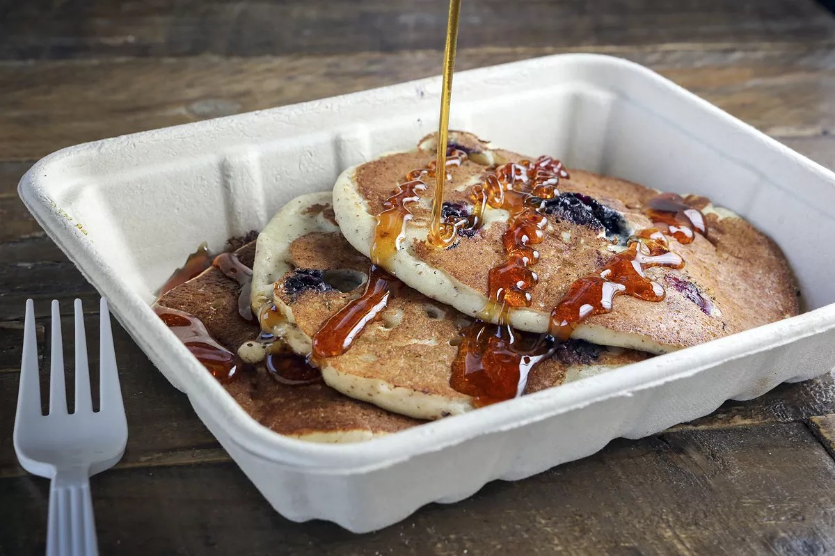 A highlight is the vegan and gluten-free pancakes served during breakfast and weekend brunch. They’re prepared using flax and garbanzo flour, and arrive with a blueberry lime compote, a pineapple lime compote, sliced bananas, and maple syrup. On the side there’s velvety house-made coconut butter that takes nearly three days to make and as many pieces of machinery. It’s excellent, as are the pancakes. The only problem is there’s not nearly enough blueberry-lime compote.
