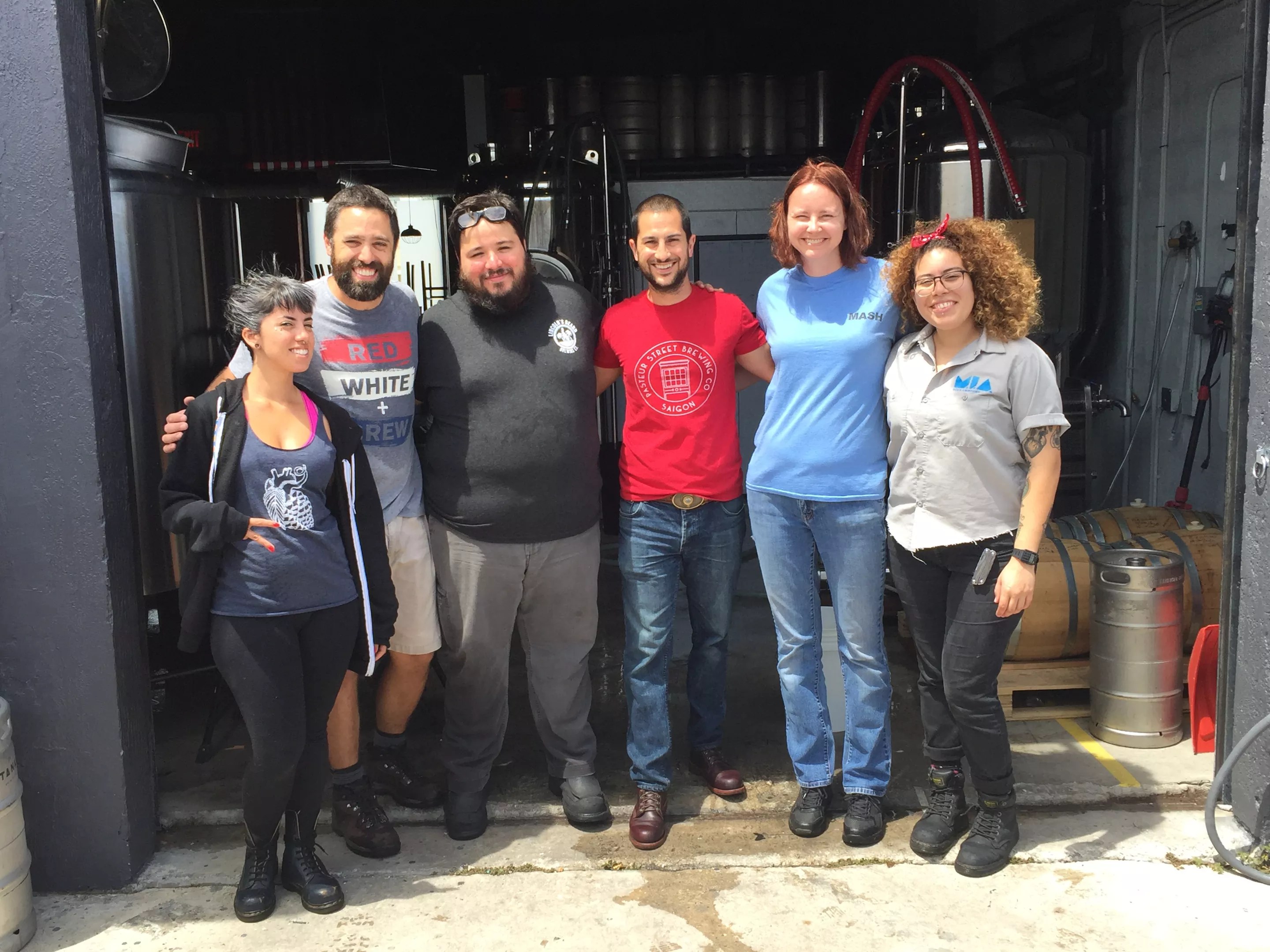 Josh Hubner (in the red shirt) and the brew crews from Lincoln's Beard Brewing and M.I.A. Beer Company.