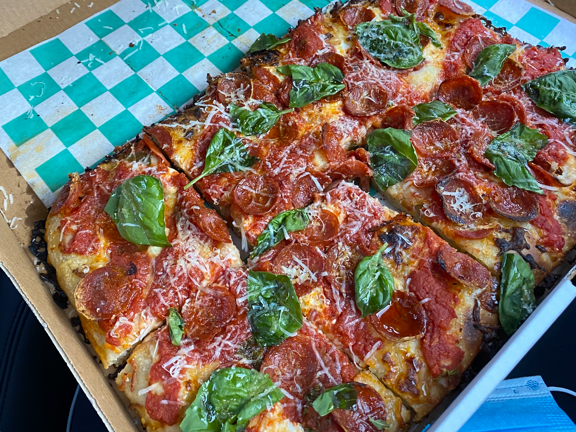 I remember the first time I picked up a box of Old Greg’s on April 25, 2020, from the couple’s front porch step in the Morningside neighborhood. I remember waving goodbye to them from a safe distance (it was the pandemic), walking back to my car, and propping open the brown pizza box that was still warm on my lap. (I noted to myself the box had a really cute logo.)