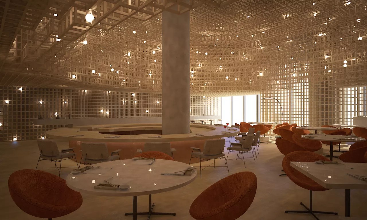 Located in the South of Fifth neighborhood, the 3,330-square-foot eatery’s dining room will seat 66 and will be enlivened by a unique ceiling structure made with 70,000 wooden cubes. A ten-seat sushi bar will stand at the center of the room, where offerings will be prepared while guests watch. The cocktail bar, helmed by Brazilian mixologist Márcio Silva, will pour specialty drinks such as the Shokobutsuen – a mix of gin, fresh lemon juice, basil, cucumber, mint, and organic sugar syrup – along with wine and sake.