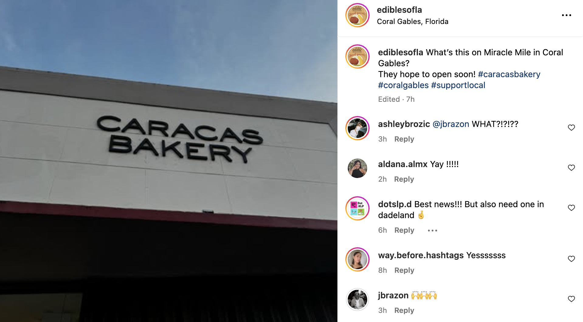 Edible South Florida even posted a photo of the storefront with the caption, “What’s this on Miracle Mile in Coral Gables? They hope to open soon!”
