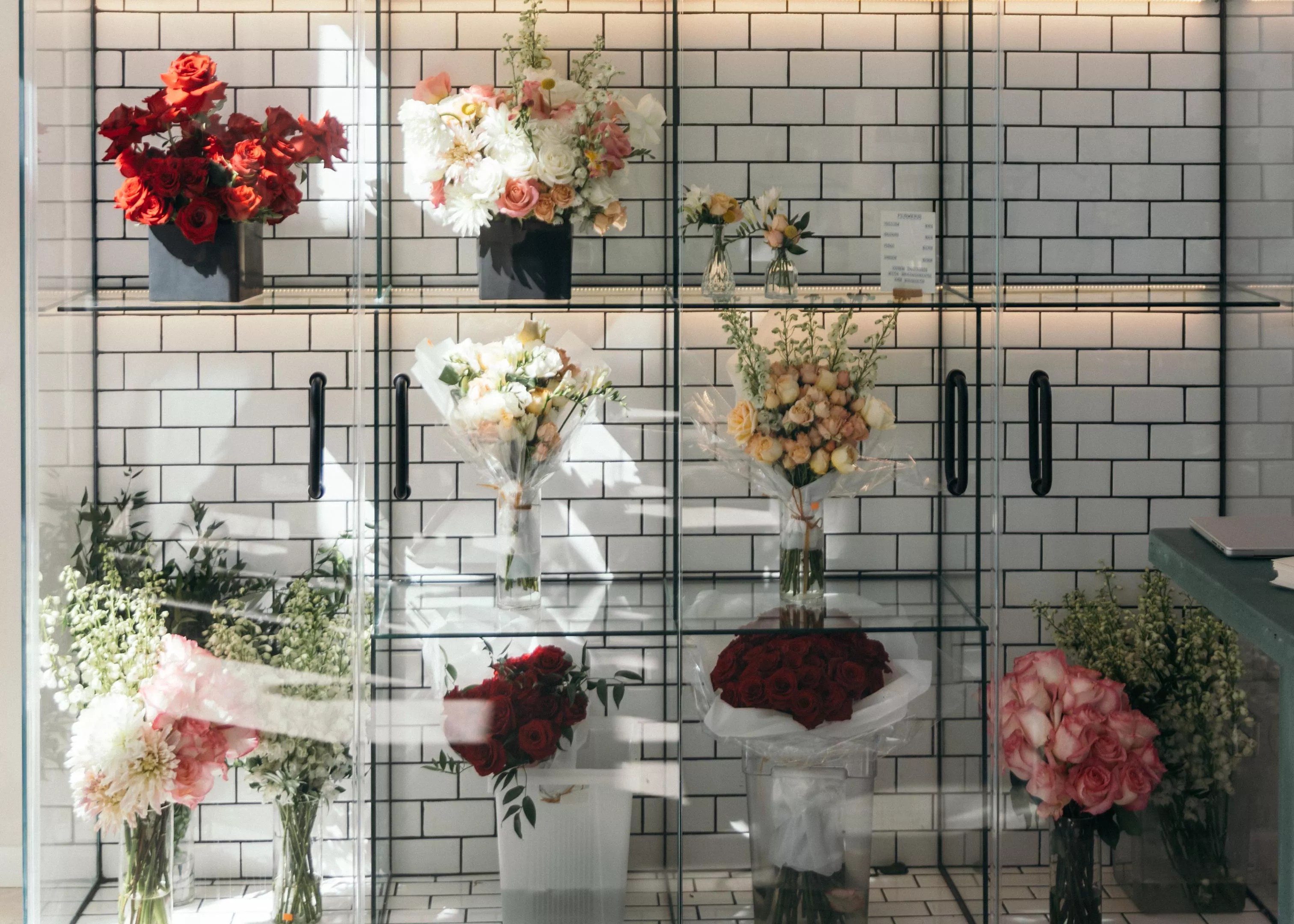 The flower arrangements at Navi are kept refrigerated instead of air-conditioned, which helps them last longer.