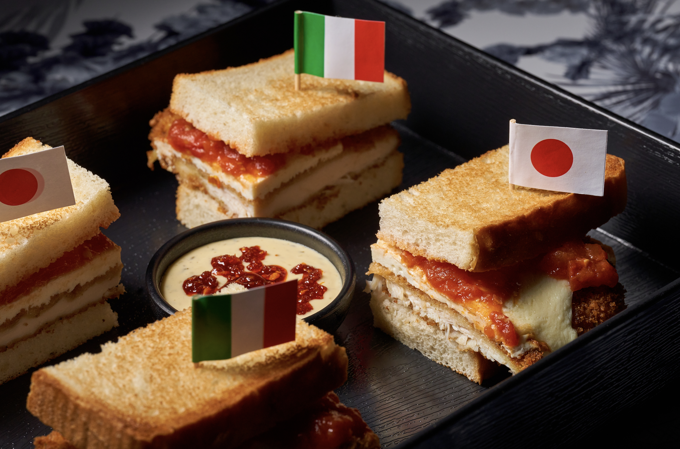 The chicken parm katsu sando assortment at Oise Ristorante by Brad Kilgore inside of the Oasis in Wynwood