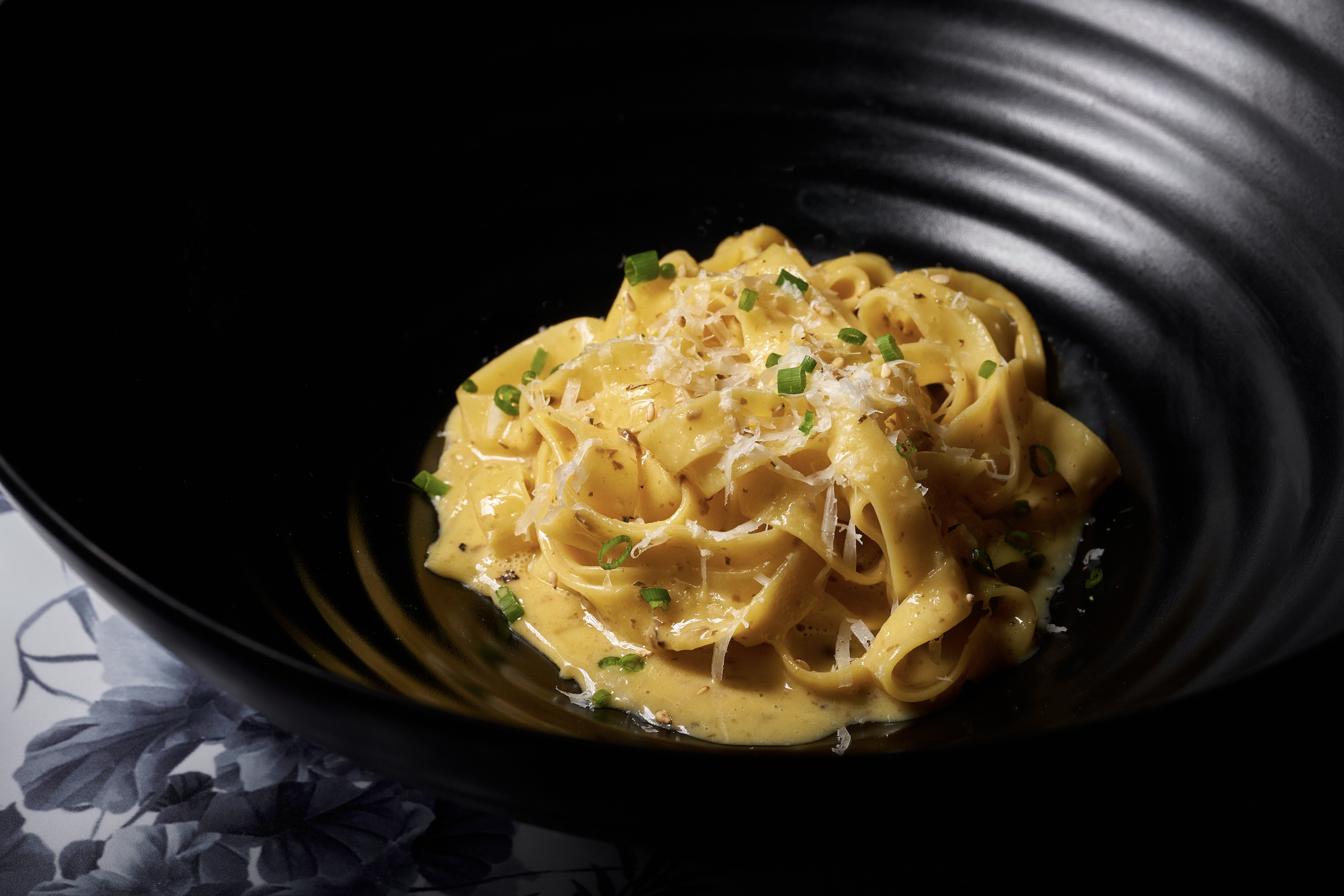 Udon carbonara with jidori egg yolk and black truffle at Oise Ristorante in Wynwood