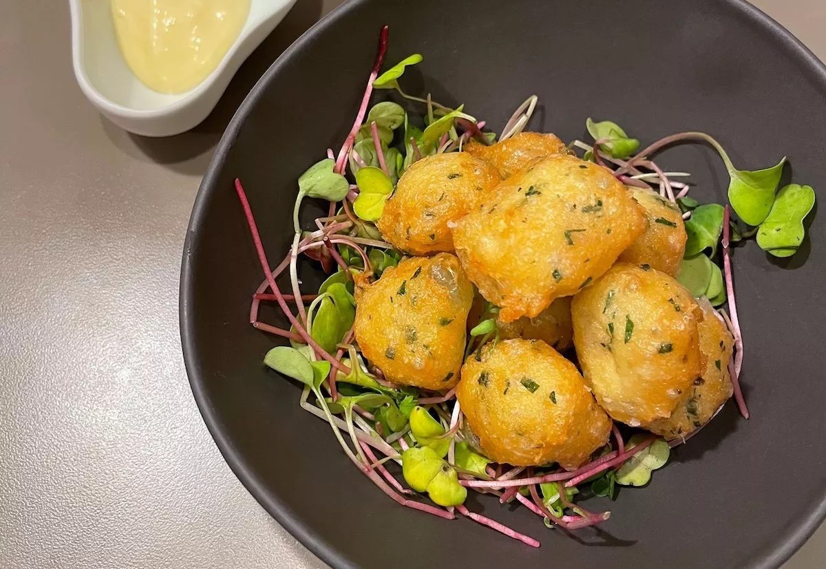 Lur, inside Time Out Market in Miami Beach, prepares Basque-inspired fare including these codfish buñuelos.