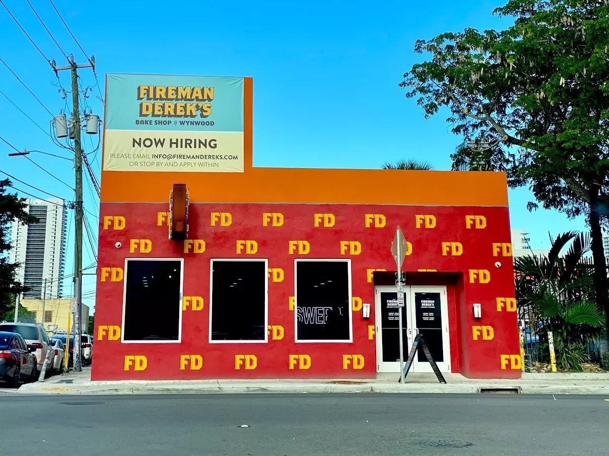 Pie master and entrepreneur Derek Kaplan has officially closed the original Fireman Derek’s Bake Shop – to make way for a larger, one-of-a-kind Miami dessert destination. The shop has relocated to an all-new Wynwood location, where cakes, pies, and savory items now have their own separate display cases for a more customer-friendly experience. Kaplan is also offering his own line of hand-churned ice cream inspired by the bakery’s long list of goodies (his Coconut Grove shop has been slinging frozen cups of creamy goodness since September 2020, shortly after he graduated from Penn State University’s Ice Cream course). A state-of-the-art kitchen will be hidden in the back, where brownies, cookies, and other items will be baked onsite with pies and cakes made daily at Kaplan’s Little Haiti bakery. Staying true to its Wynwood roots, the new location has an industrial, artsy feel with décor in sync with the laid-back atmosphere. Guests can expect Instagrammable neon signage and a handpainted, pie-themed mural stretched across walls.