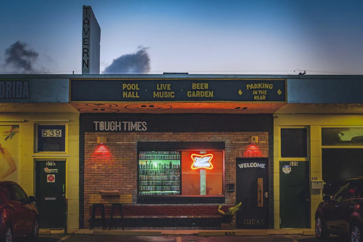 toughtimestavern.comA new bar and nightlife concept has opened in Pompano Beach, courtesy of Challo Schott, the hospitality veteran behind Better Days. The iconic dive bar that once catered to the area’s music scene was given a complete overhaul, redesigned and refurbished to offer an updated space with a high-end sound system and hand-painted murals by Schott himself, who calls Tough Times a “sleeper” venue aimed at helping set the stage for local artists. 5 p.m. to 2 a.m. Thursday, Friday, and Monday, and 2 p.m. to 2 a.m. Saturday and Sunday.