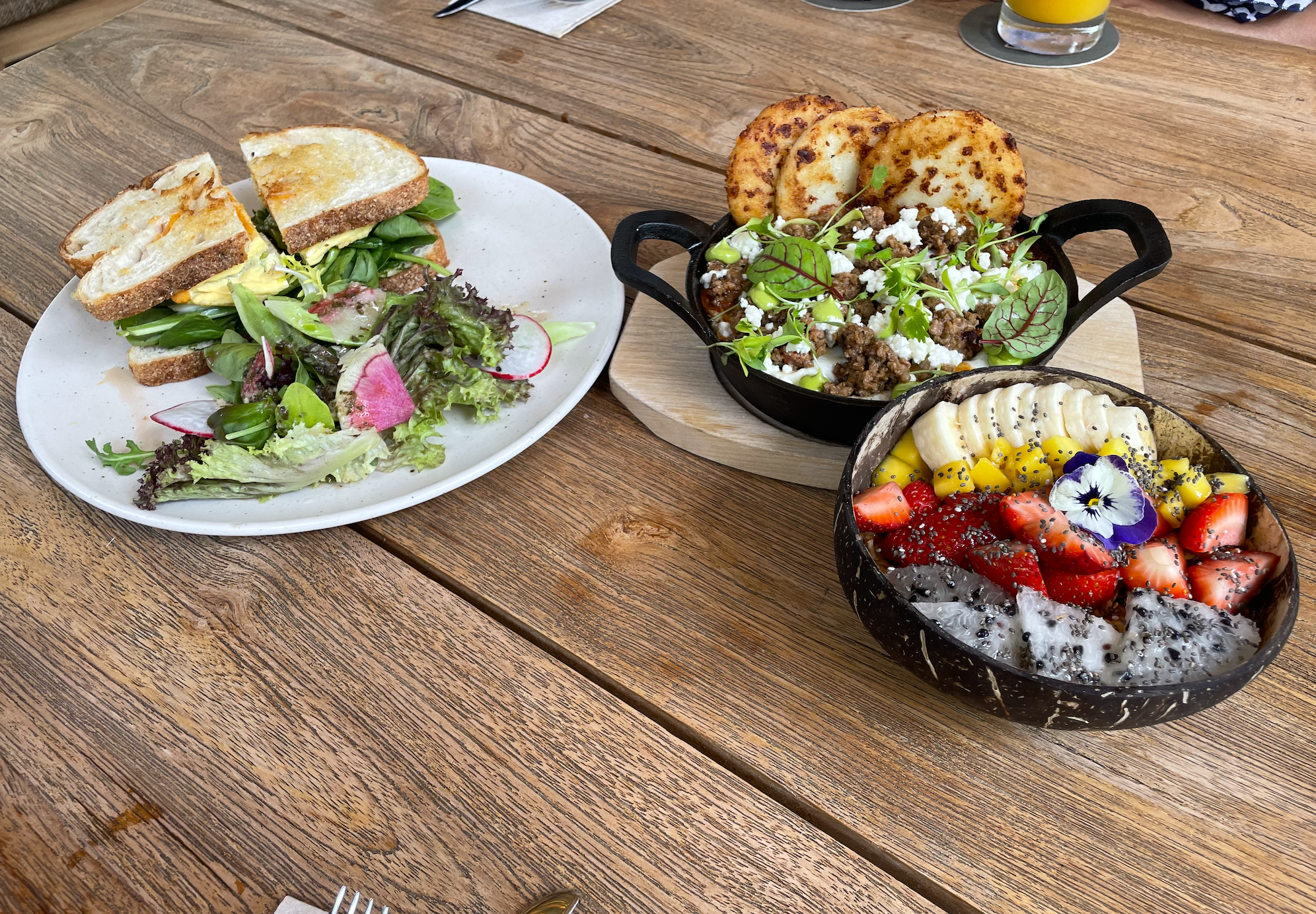 The coconut yogurt bowl was exactly right – a naturally sweet dairy alternative packed with fresh fruits and housemade, gluten-free granola. The tropical vibes just kept giving.
