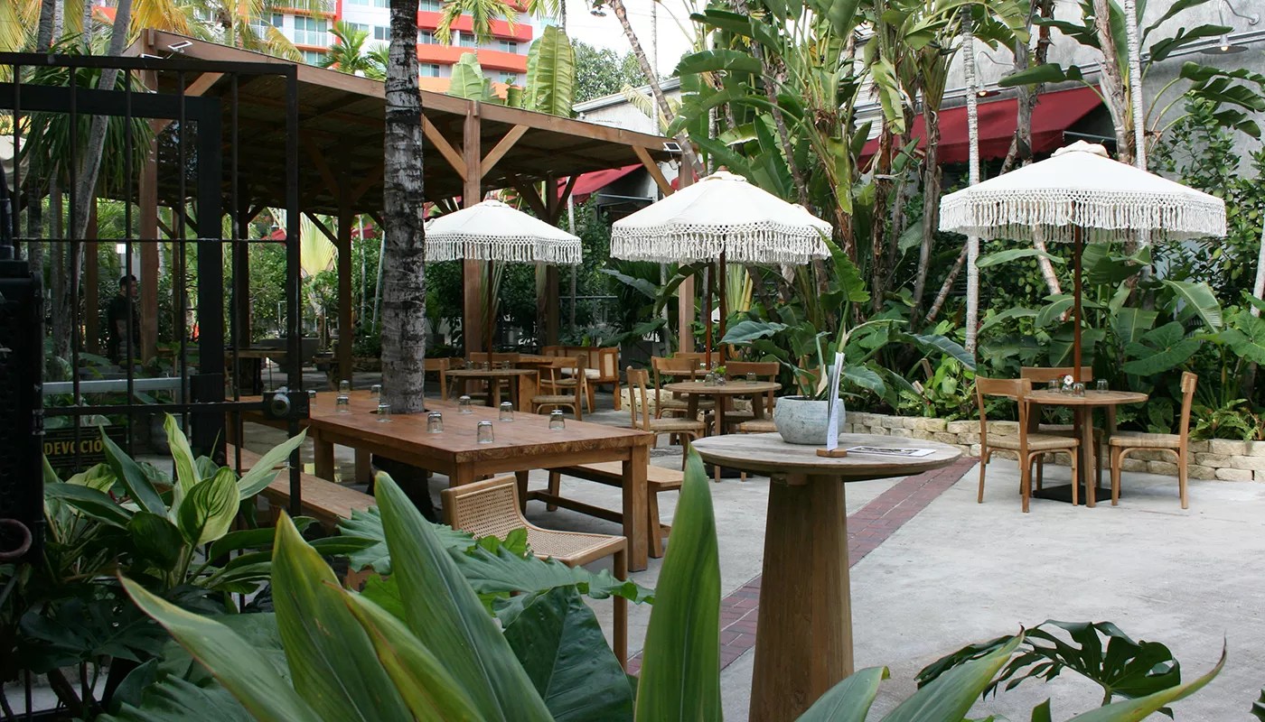 Vegetarian brunch spot Flora Plant Kitchen in Miami feels like Bali with delicious vegetarian options and Colombian dishes.