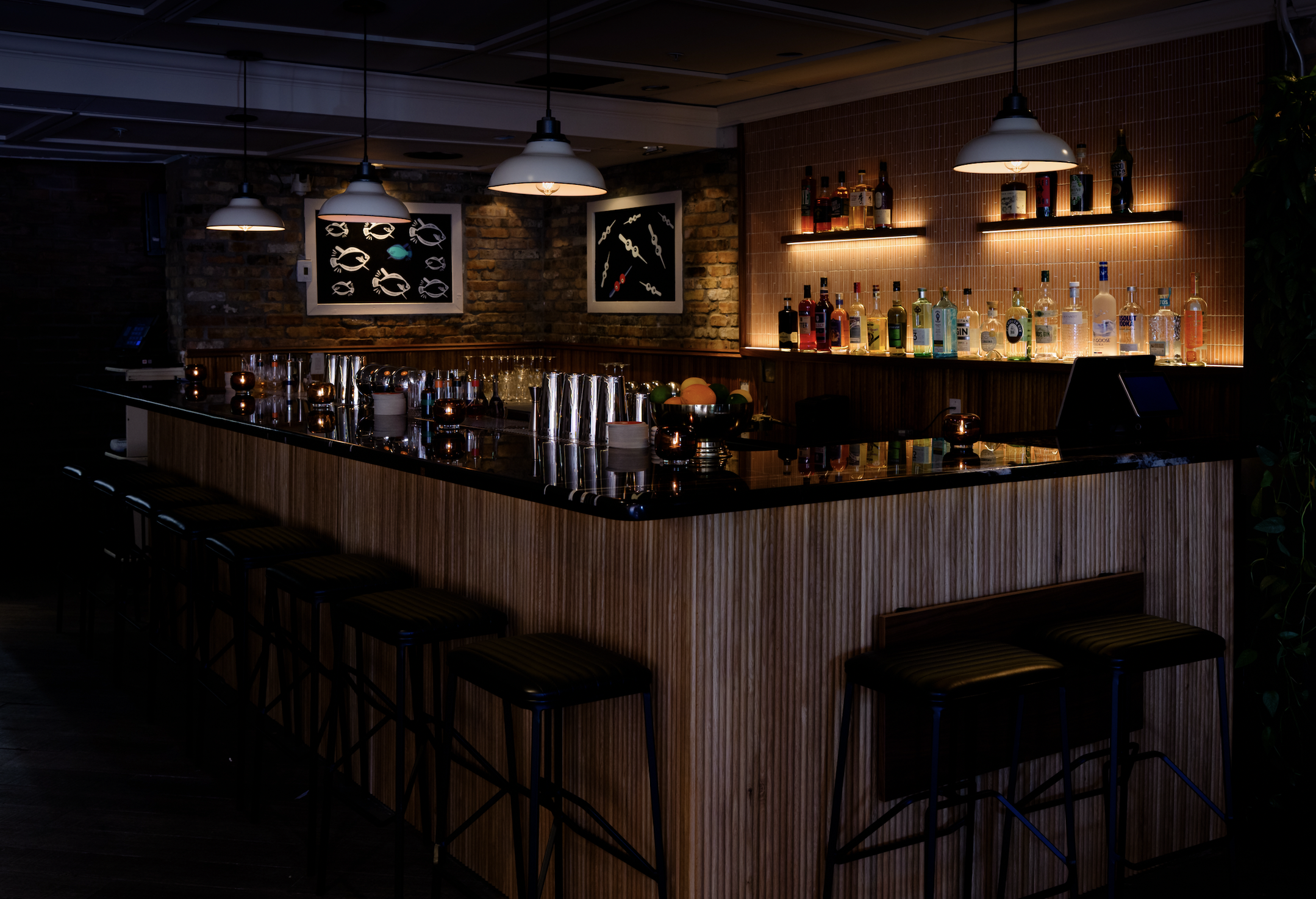 “When we were looking at the initial design plans and kind of coming up with how to incorporate the two spaces, it always felt disjointed,” co-partner Jacqueline Pirolo says. “This other room is so far from the new dining room. Even if we connect the two spaces, who would want to sit there?” That’s when the idea for Fluke was born.