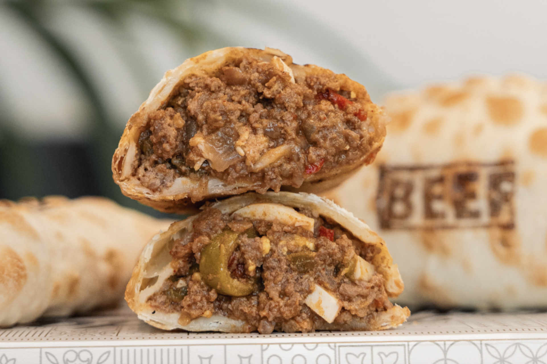 Each empanada is stuffed with filling, including the beef empanada.