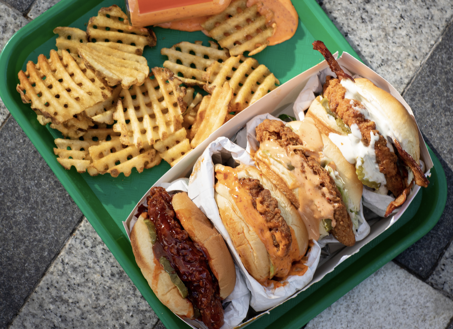 At Sunset Terrace, you can find juicy fried chicken sandwiches with a variety of offerings, sides, and slushies. Fuku is owned by prolific chef, author, and restaurateur David Chang. Chang is best known for Momofuku Noodle Bar, which opened in New York City in 2004. His culinary empire includes this fast-casual concept, which launched in New York City in 2016 and specializes in delicious fried chicken sandwiches with plenty of sauce.