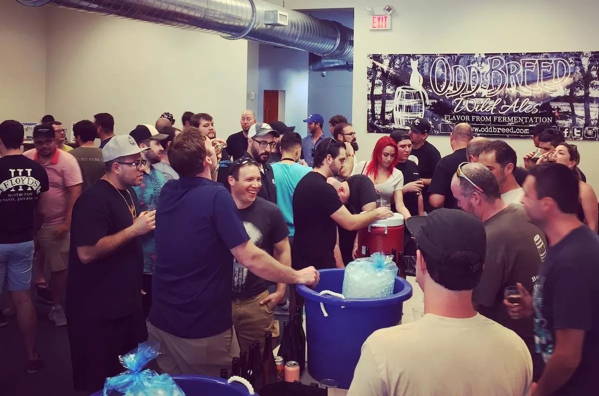 Odd Breed Wild Ales rare-bottle-club members gather for the brewery’s first meet-and-greet bottle-share event.