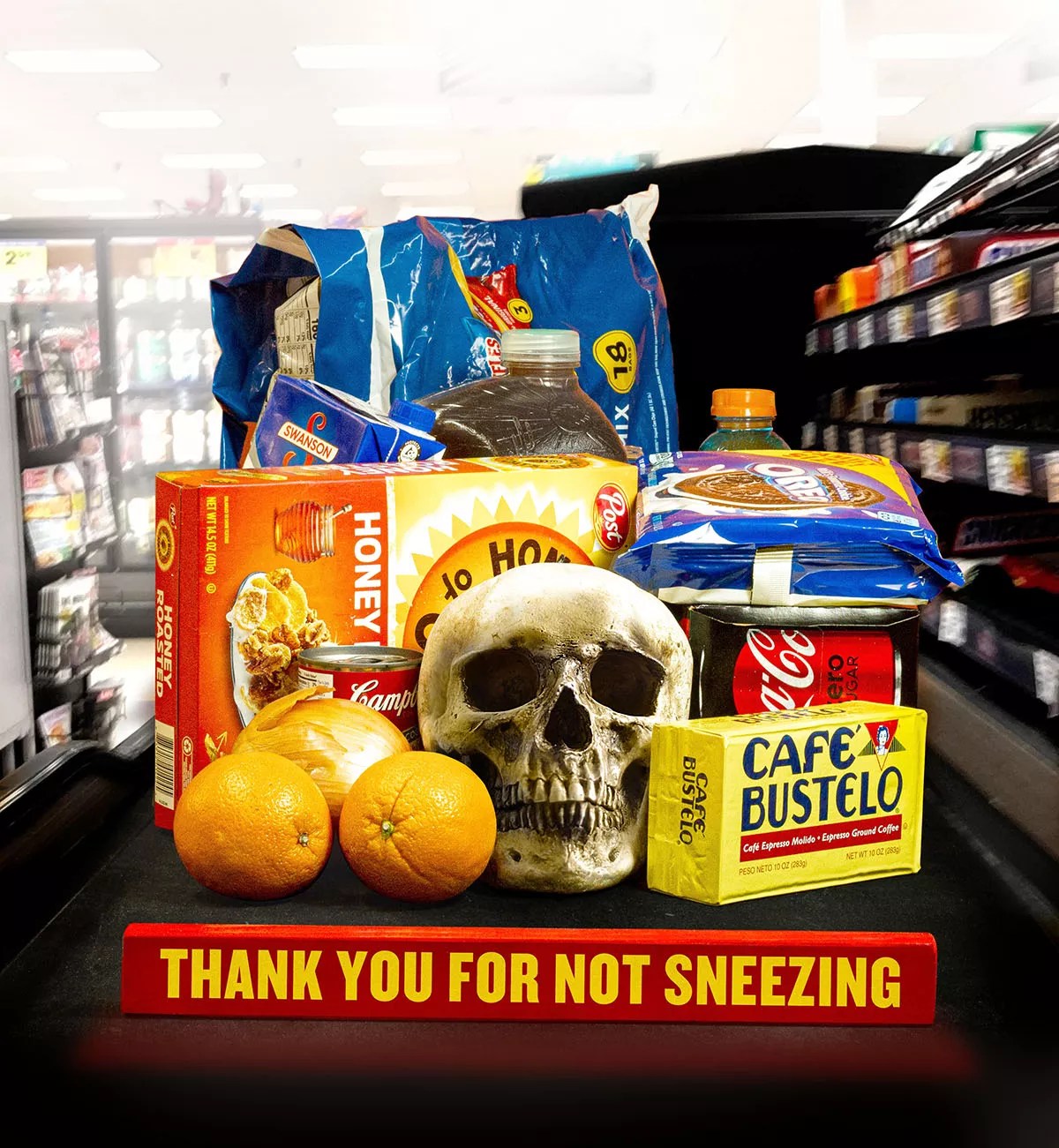 For now, arrows of blue tape stretch the expanse of each aisle, indicating one-way foot traffic.