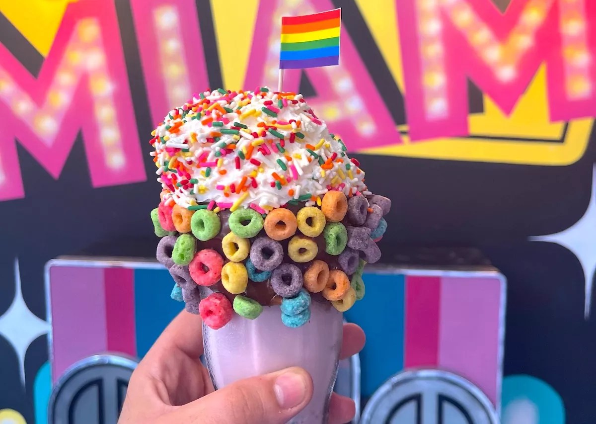 Popular for its signature over-the-top milkshakes, this South Beach hangout is celebrating Pride with a bright and flavorful “Strawberry Rainbow” milkshake created by partner and general manager Ivan Kolev. Loaded with sprinkles, whipped cream, with a chocolate- and Froot Loop-crusted rim, the $13 milkshake is the perfect way to cool off in between Pride parades and is available all week long. Open Monday through Saturday from 8 a.m. to midnight, and Sunday from 8 a.m. to 10 p.m.